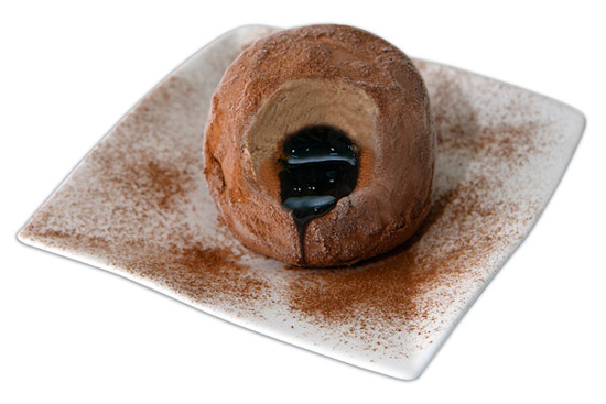 Tartuffo alla Pizzo. Chocolate icecream with a molten choc centre.