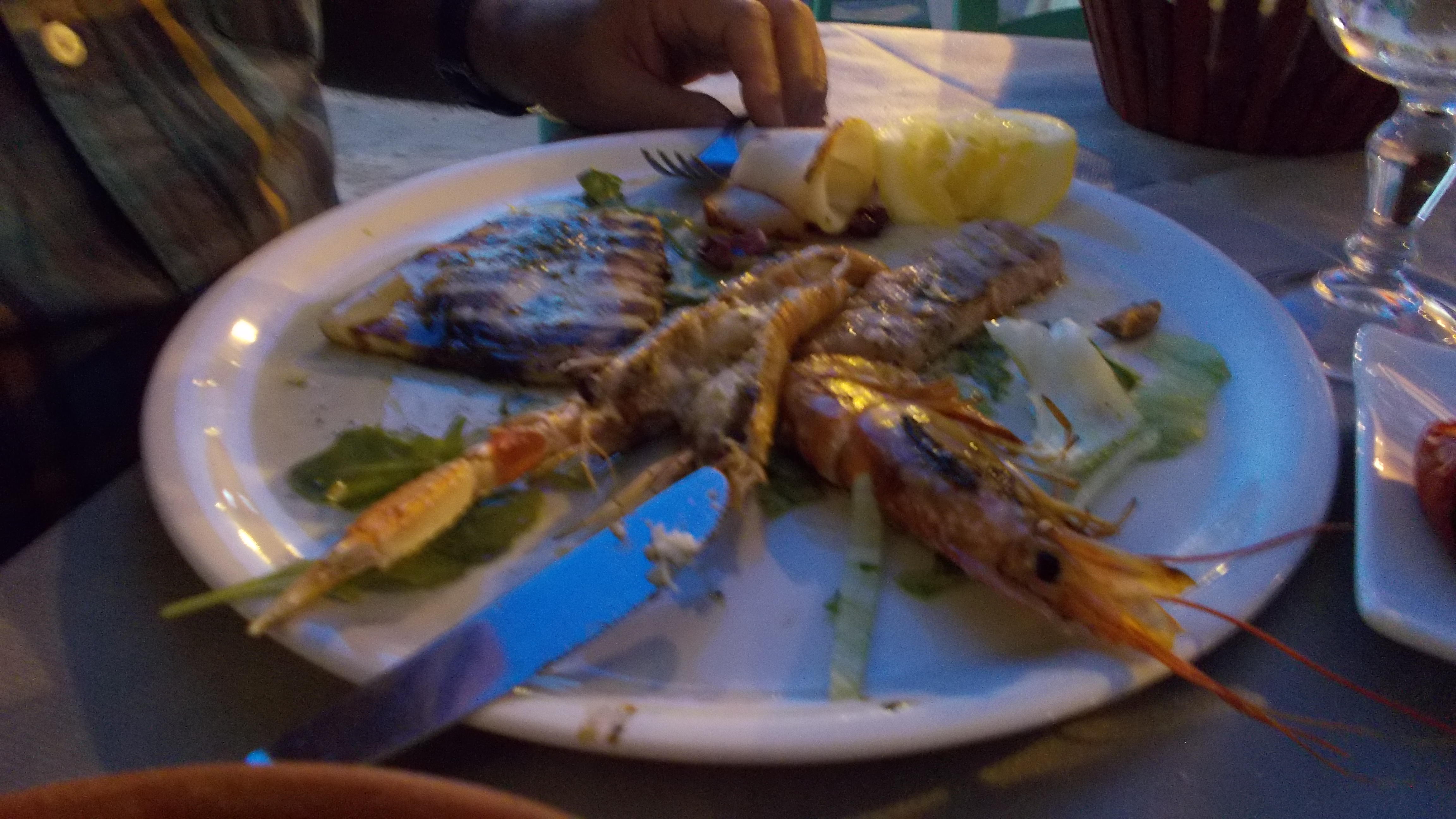 Swordfish, tuna, a large-ish prawn, a langoustine and a squid tube all immaculately BBQâd.