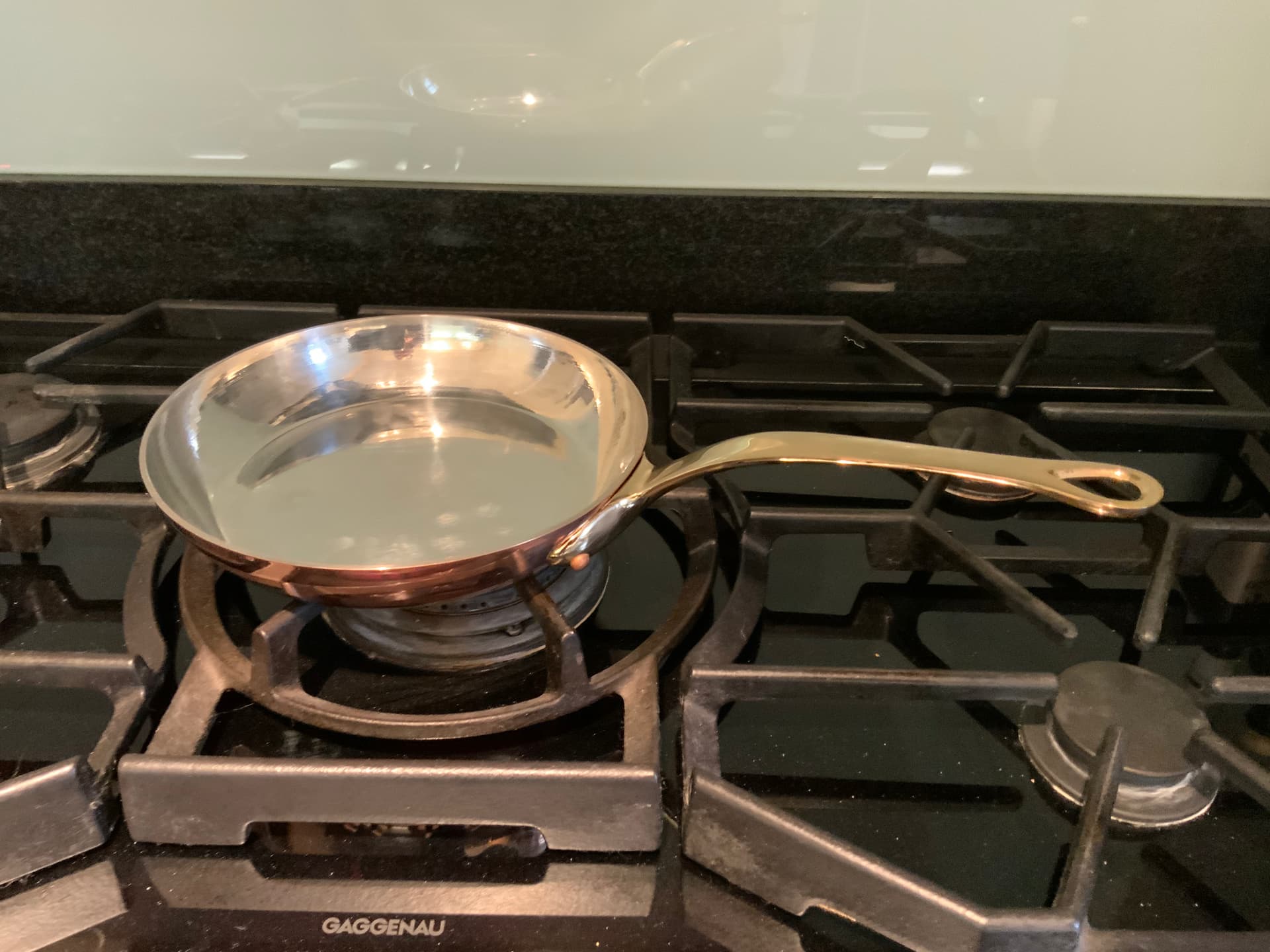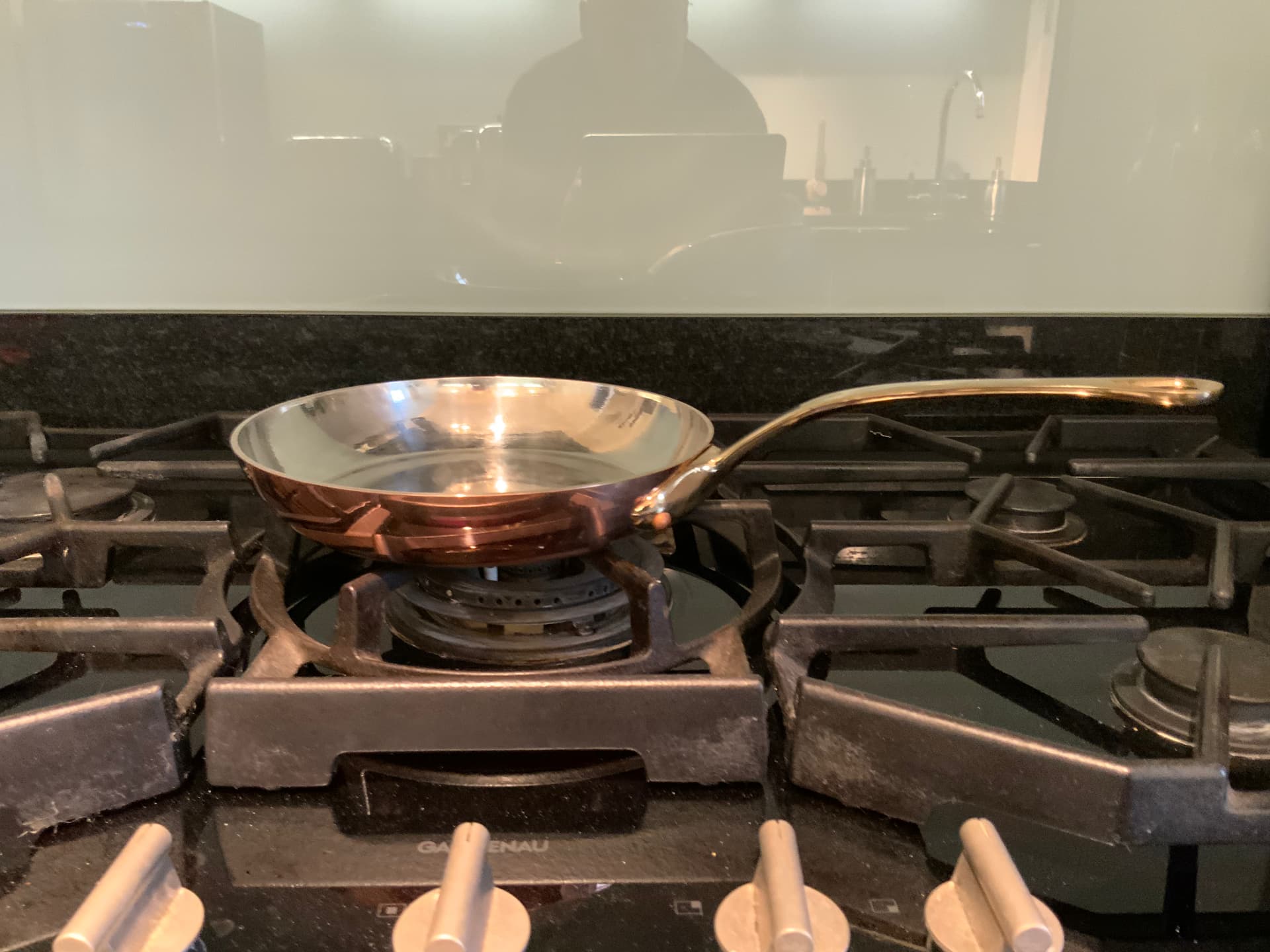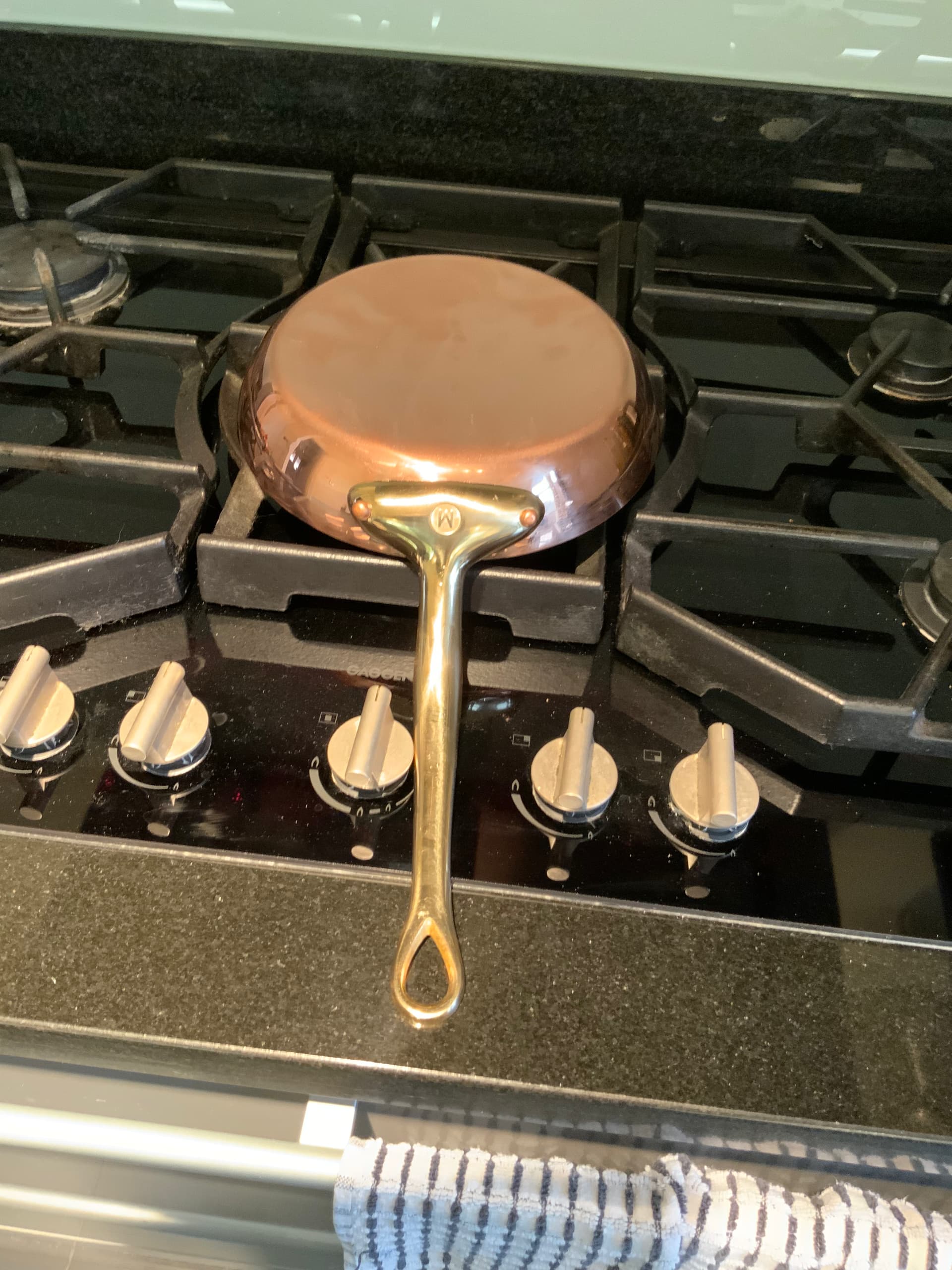 20cm Mauviel M’Heritage Copper Frying Pan , 2,5 MM thick sides to 3.5 MM base , and most importantly Tin lined , safe up to around 200/210 deg C which is enough to get a nice colour on fish but hard searing a steak is a no no.