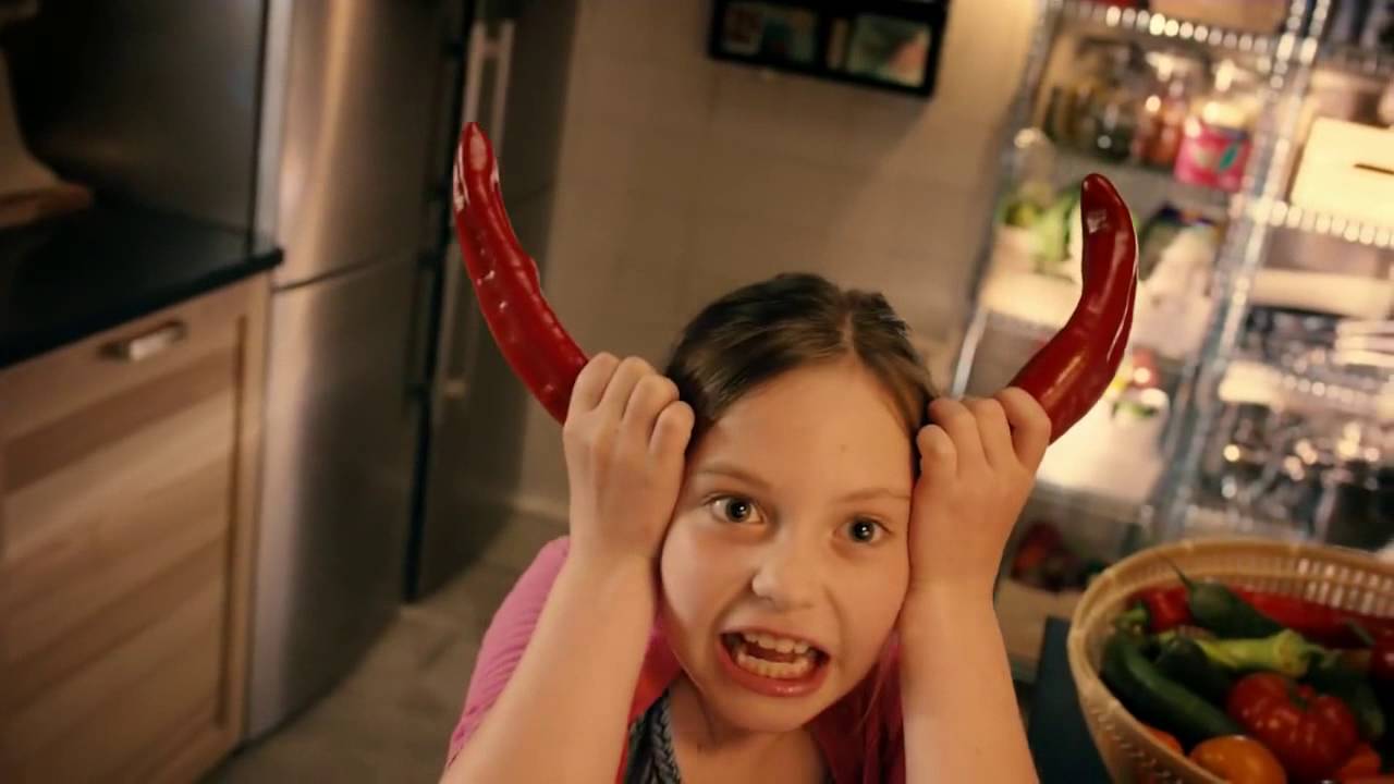 He told me that the bit with the tomatoes was ad libbed and they kept it in and added the girl’s pepper ‘horns’