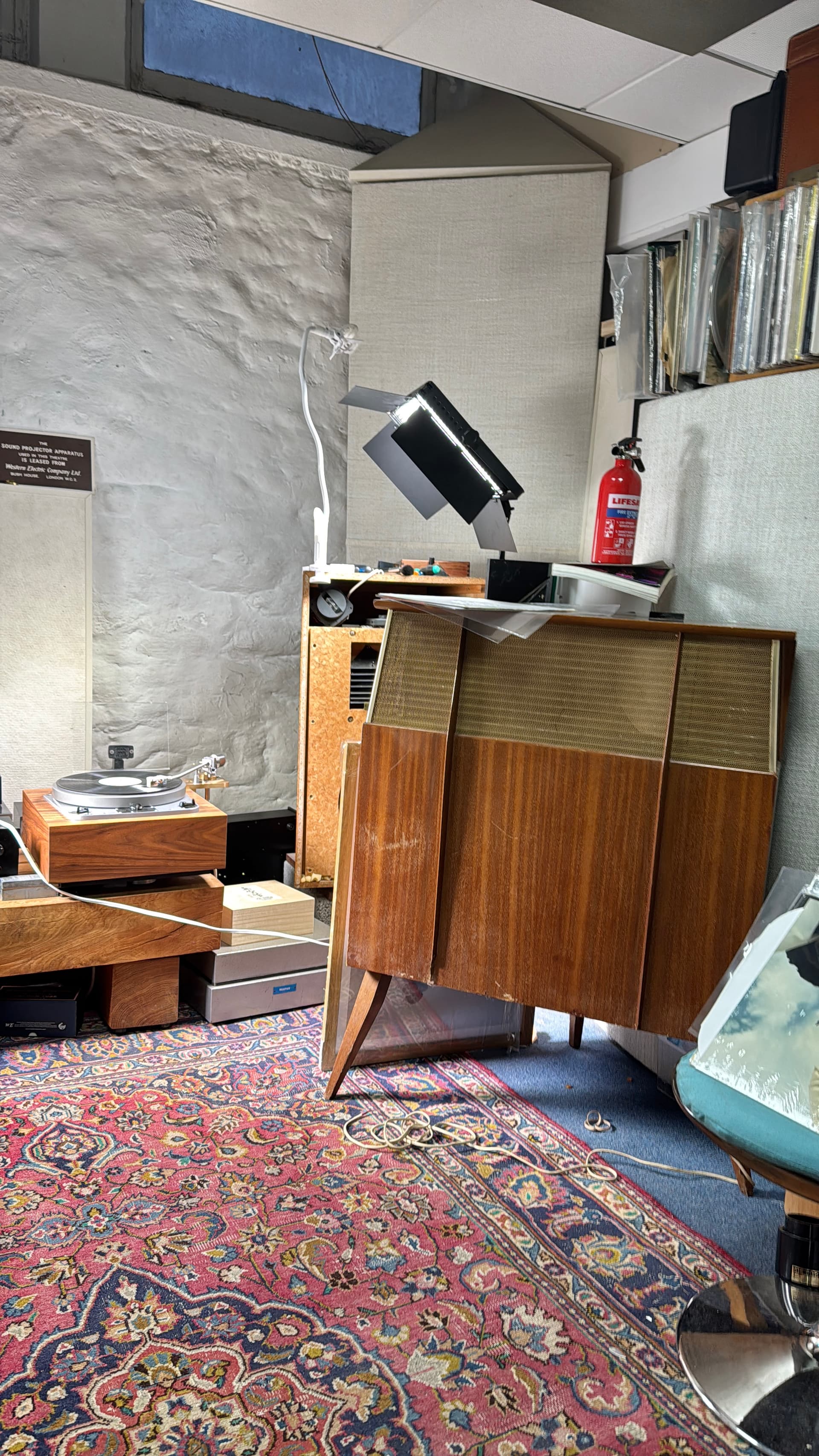 Stu visited today so we moved the TP1 cab into the main room allowing my actual amp and deck to be deployed. The test Helmet here has no top, so a nice cardboard disk a book and a fire extinguisher for weight are on duty currently. I suspect this will catch on but it’s £500 to you before the price hike.