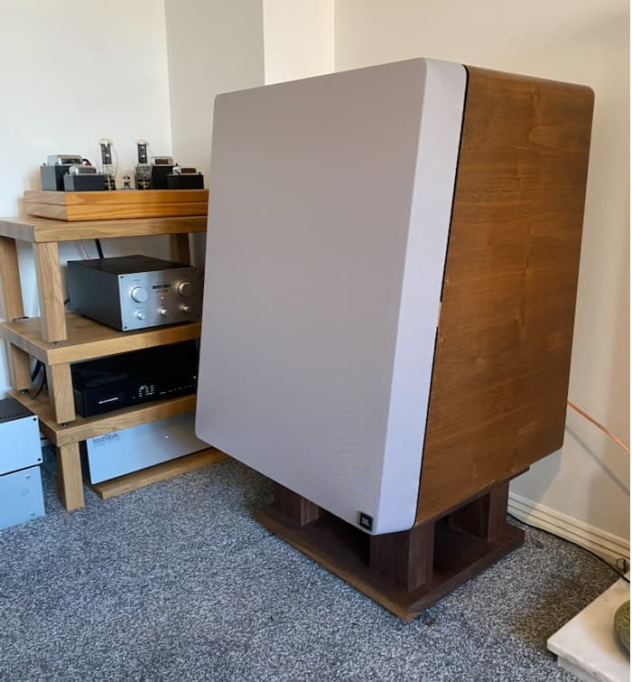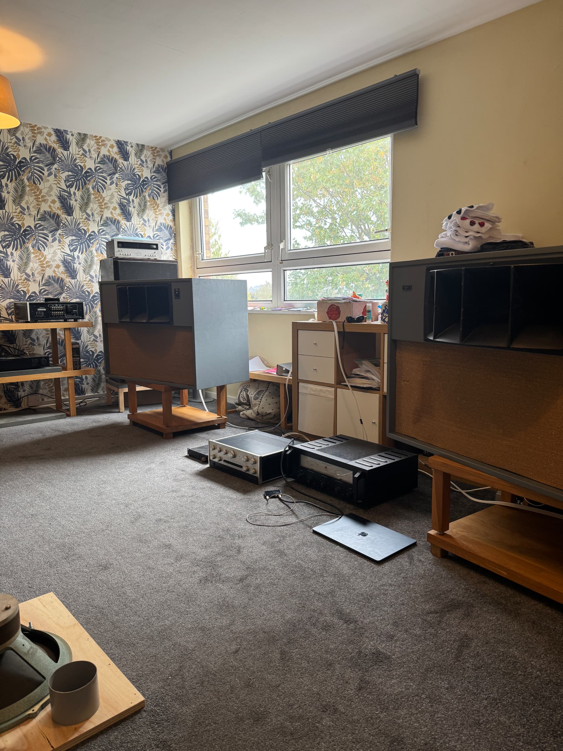 Altecs tested and all good. I have these Hifi racks podiums that bring them to almost the right height. Might be able to unscrew the front legs a few turns to get them angled up slightly and should be good.