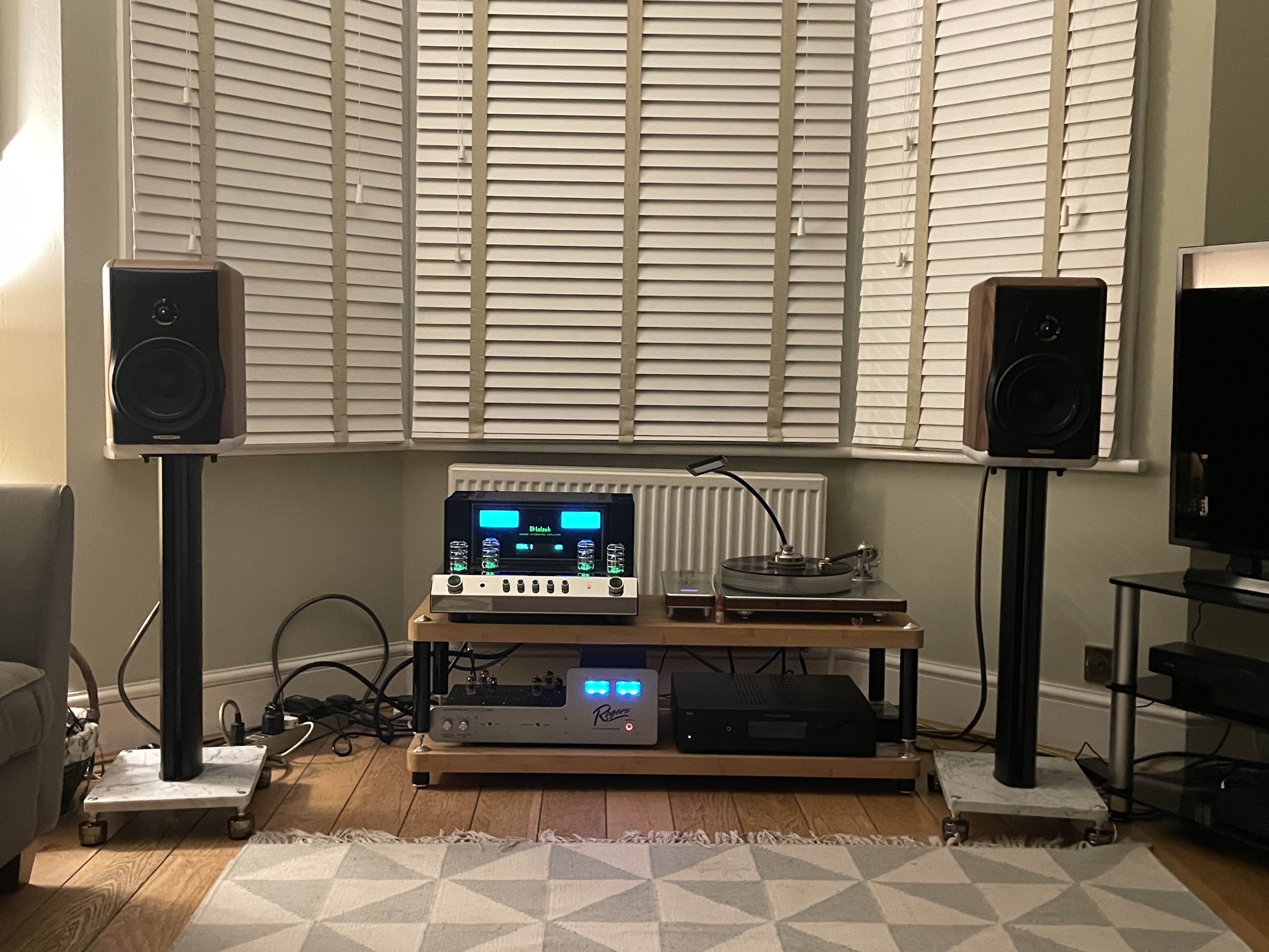 Fitted full length heavyish curtains behind the Gotos. Very pleased because this has addressed two issues - firstly a slight shoutiness in the upper mid on some recordings (mostly CDs) has now completely disappeared.