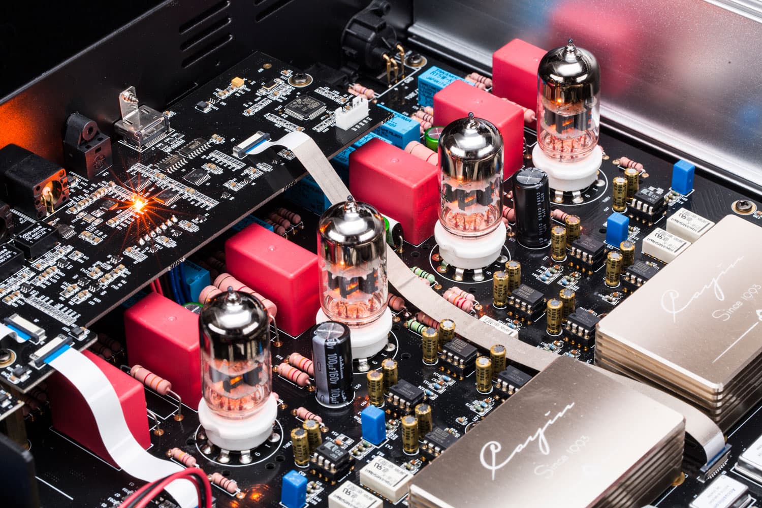 I’ve realised that it takes 4 6922s, 2 per channel. Because there isn’t a massive difference between solid state output mode and valve output mode I suspect the stock valves are more than average. I’ve got 4 Reflektor 6922 here, which I’ll pop in at some point. My pre uses 6922 as well. Here are some stock inner shots.