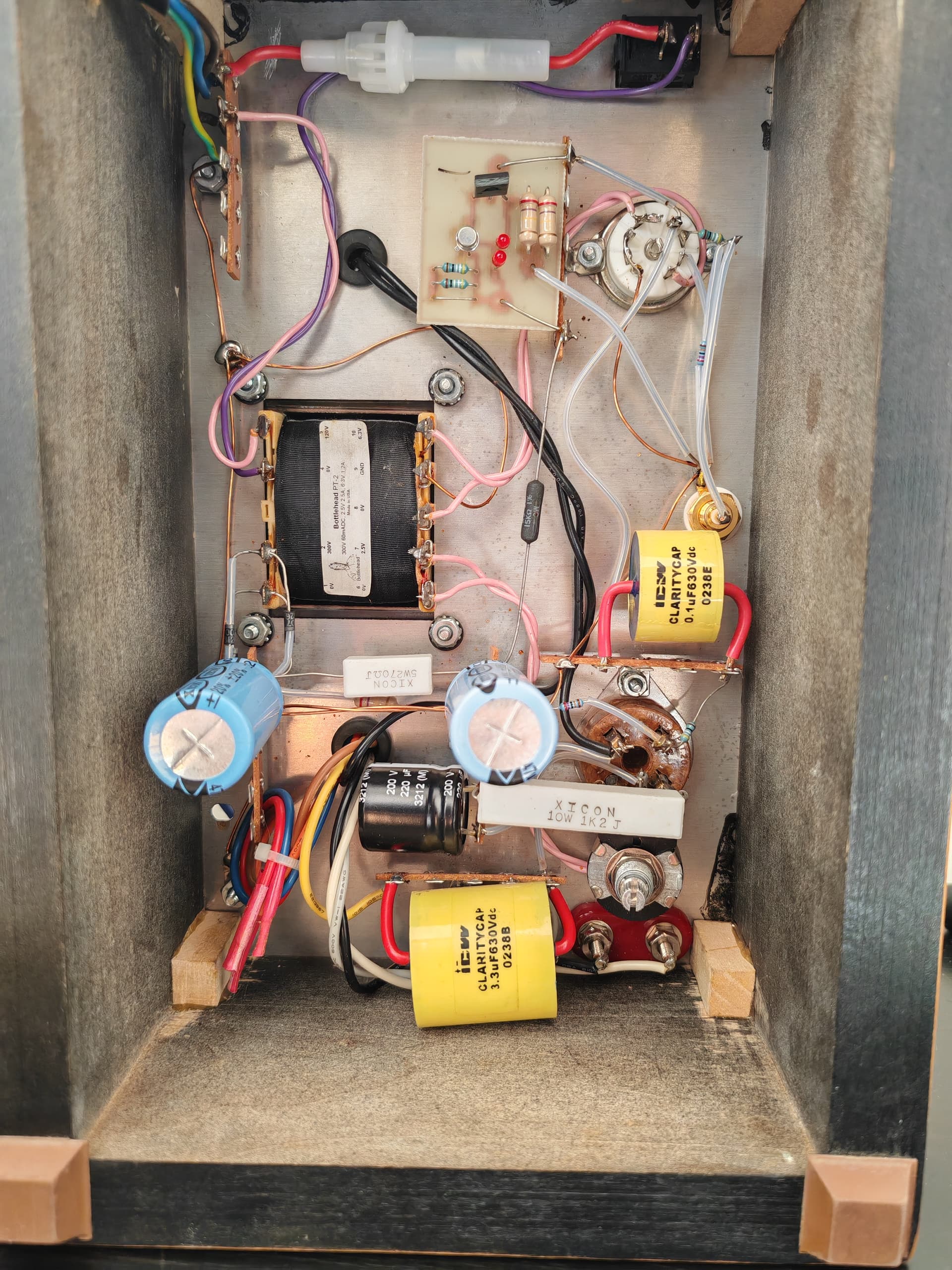 Judging from the plain woodwork and hand-painted black top plates, I think they must have been made from kits, but the electronics hidden away inside have been very well put together - very neat indeed ![]()