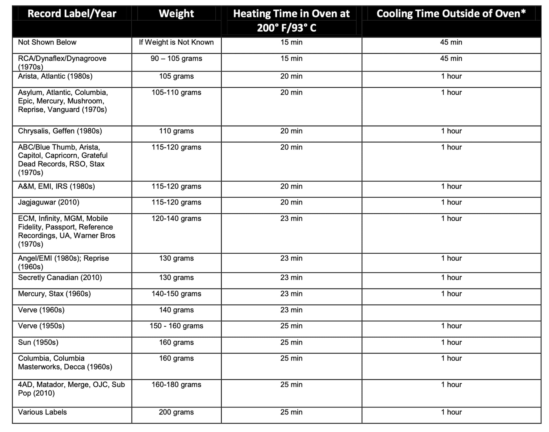 Indeed I rather thought so too which is why I’ve never tried it - I’m unlear if the times are for a switched off oven (I.e heat to 200, switch off and bung the records into a cooling oven. Still seems way too hot for my liking.