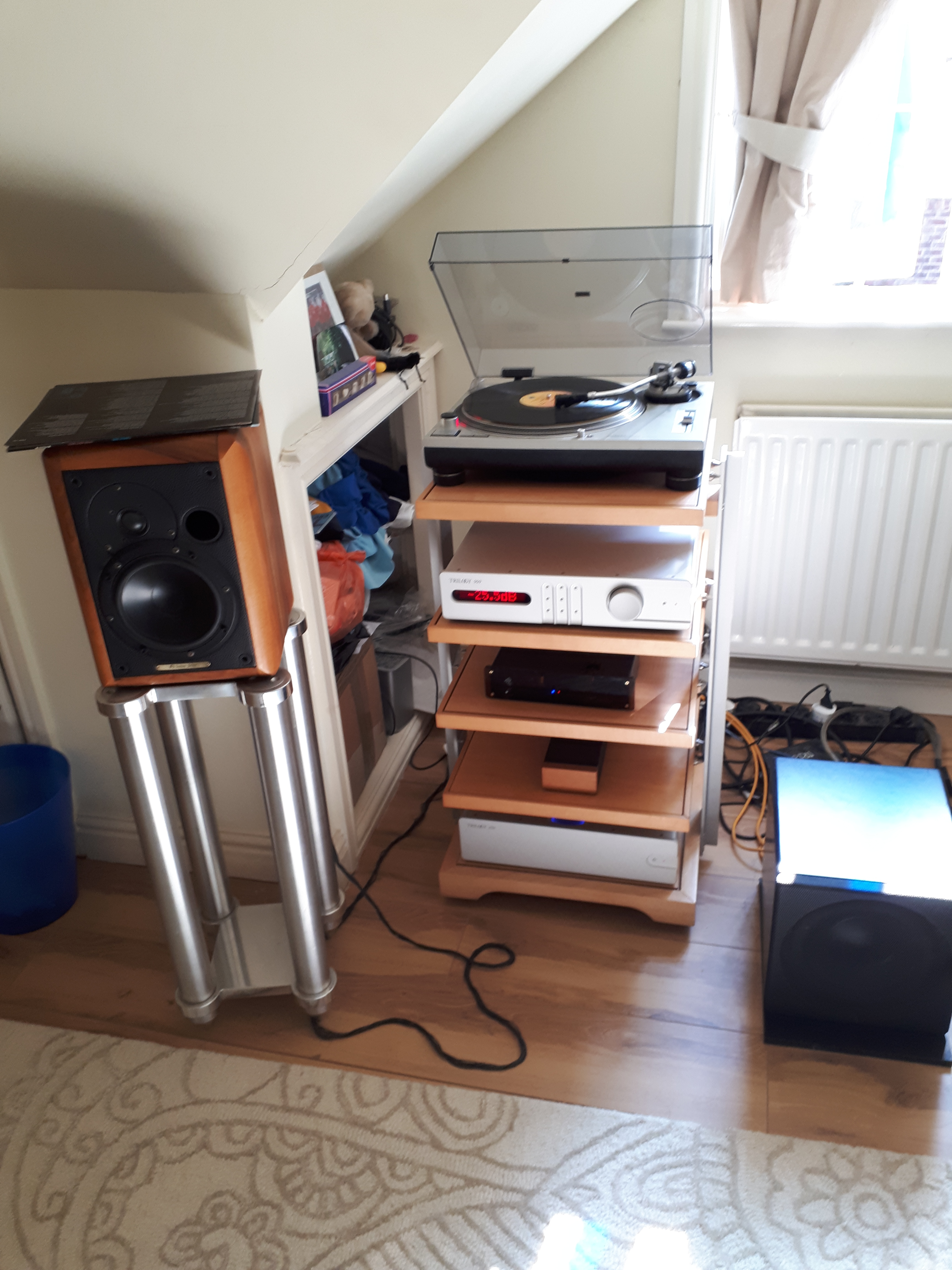 Now Technics SL-1200Mk2 with Technics EPC-271CES, Moth phono, Trilogy 990 & 909 and Sonus Faber Electa’s (first version), MQHT Havana DAC, BK sub.