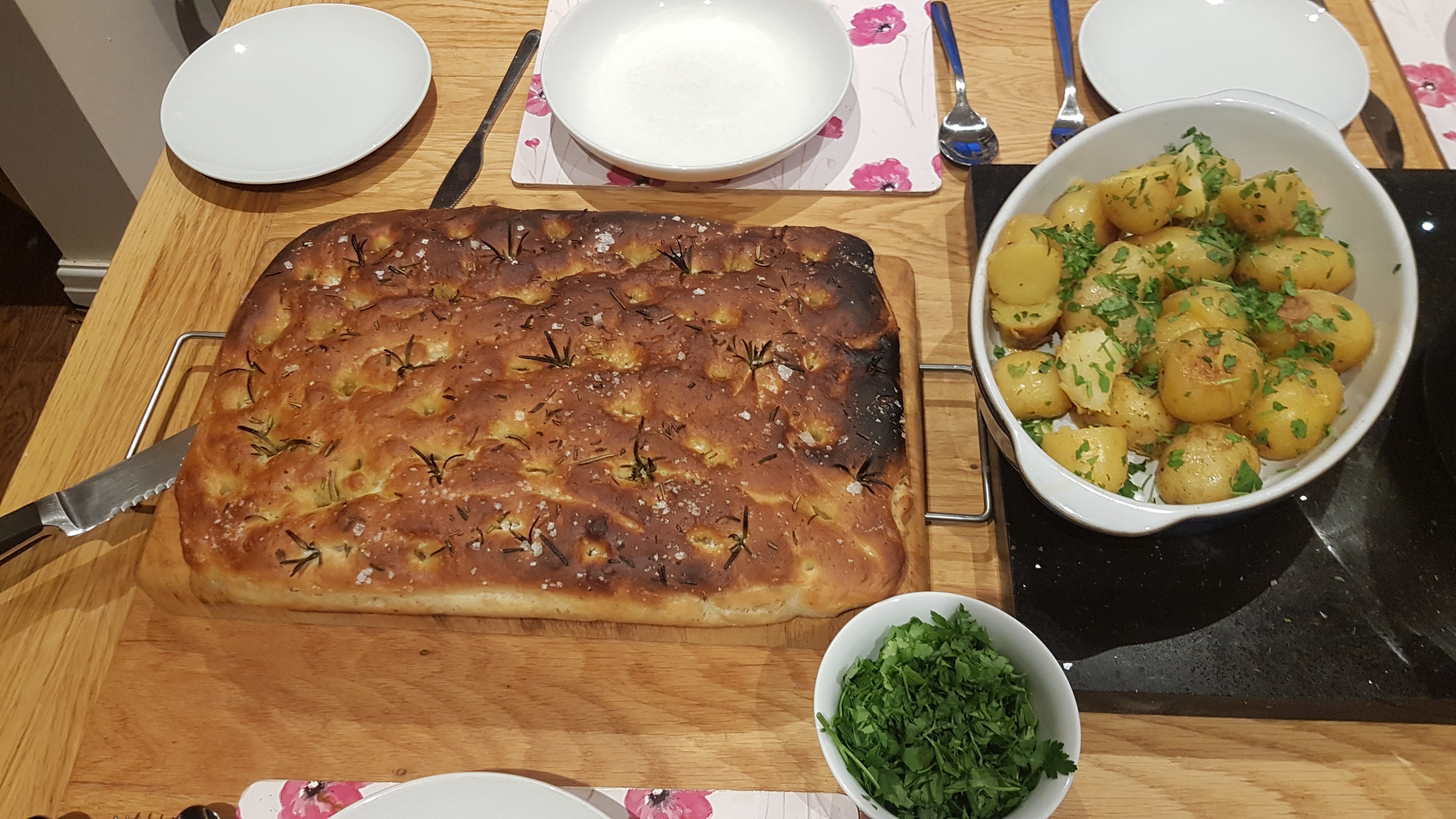 I watched (supervised, encouraged) while Lauren made some focaccia today.