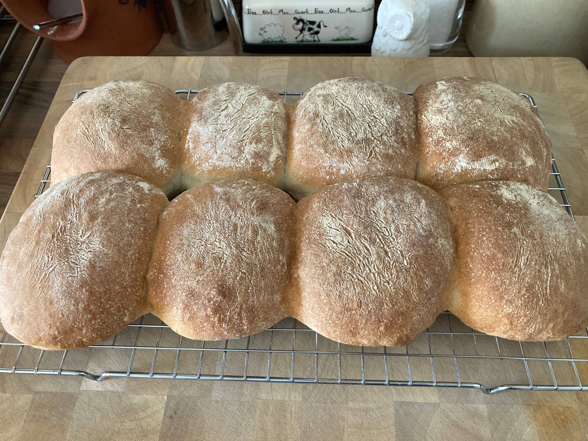 A semolina bread from a recipe I was given in Sardinia. Hasn’t come out quite as I wanted, my plaiting needs improvement for a start