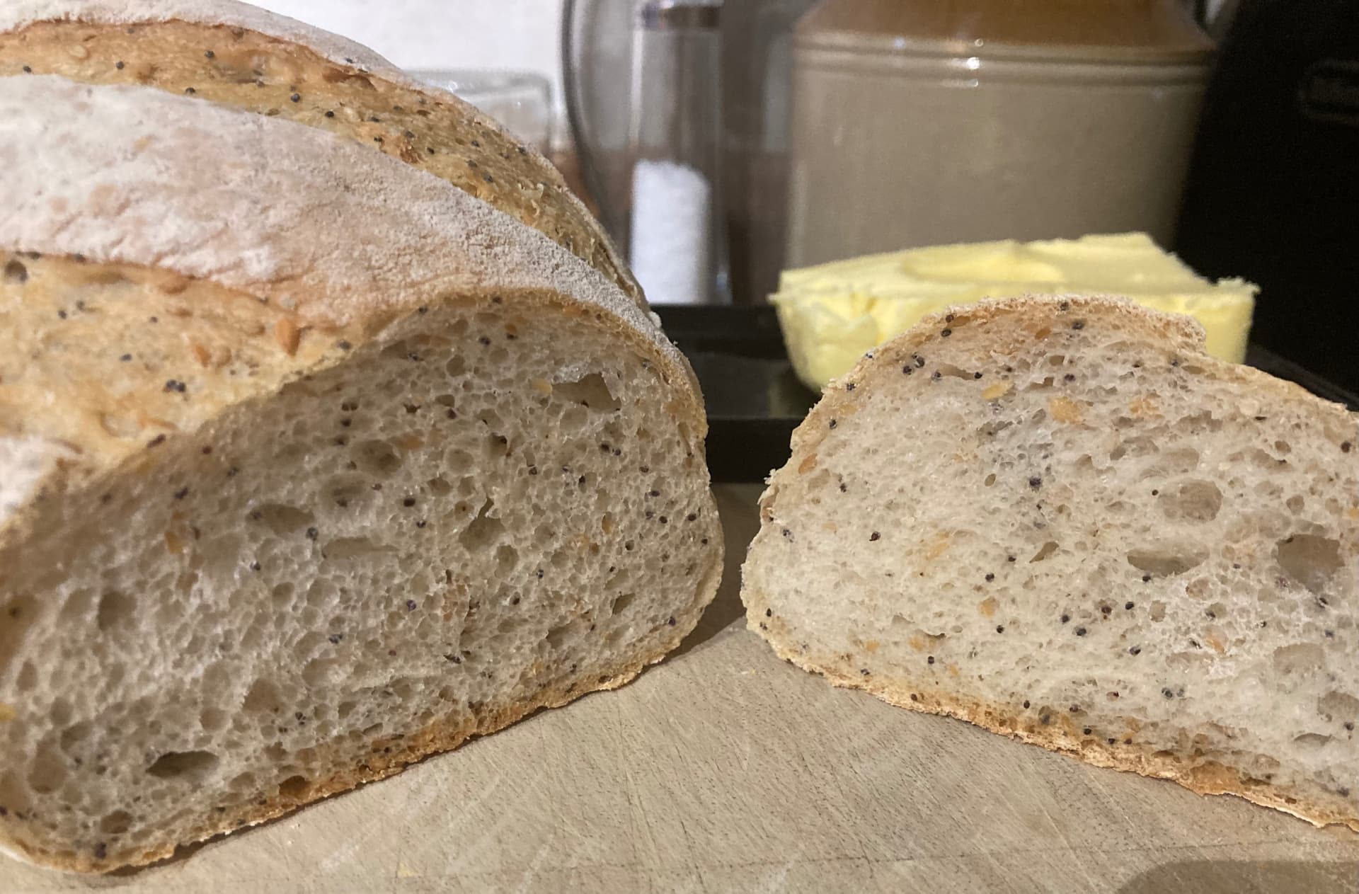 Whenever I’ve made a seeded loaf they’ve always turned out a bit dense with a poor crumb. This time I upped the hydration to 75% and although it took a lot longer to knead it’s been worthwhile. Turned out very light, great rise and has an excellent crumb.