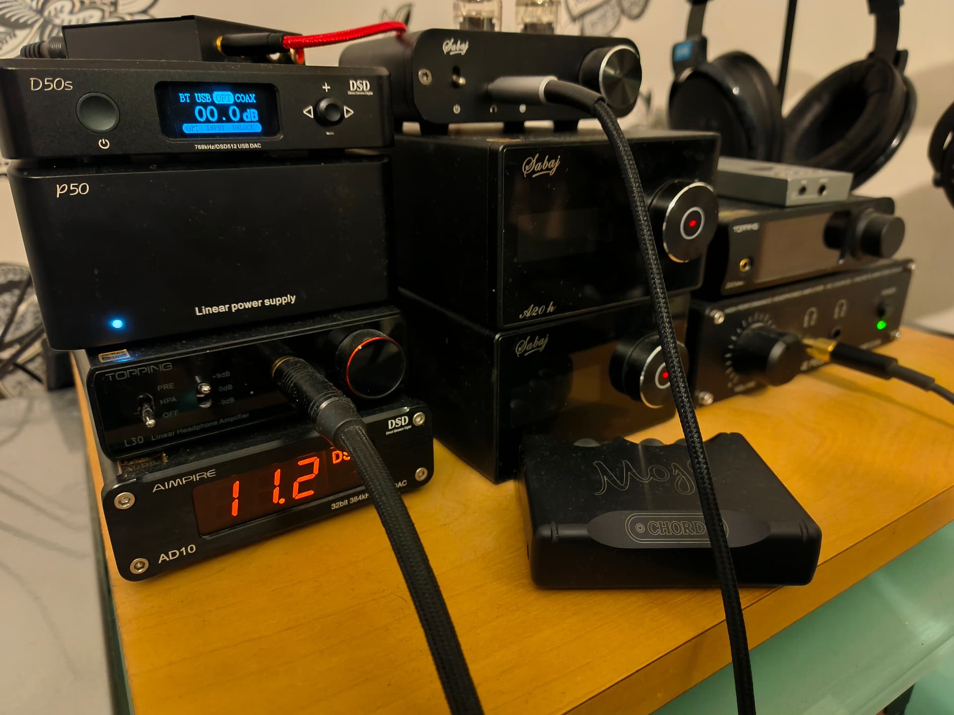 Several headphone systems all on a nice moveable platform. The RME is currently downstairs with the Elegia.