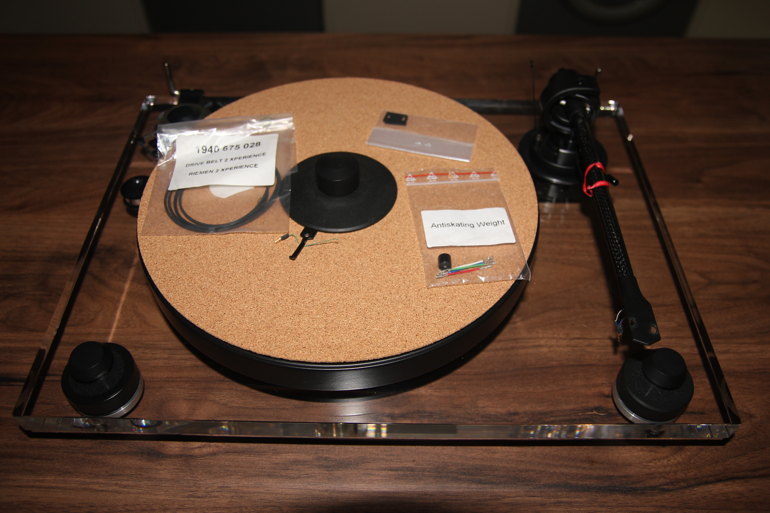A brand new unused belt and the anti-skate weight are in seperate bags as well.