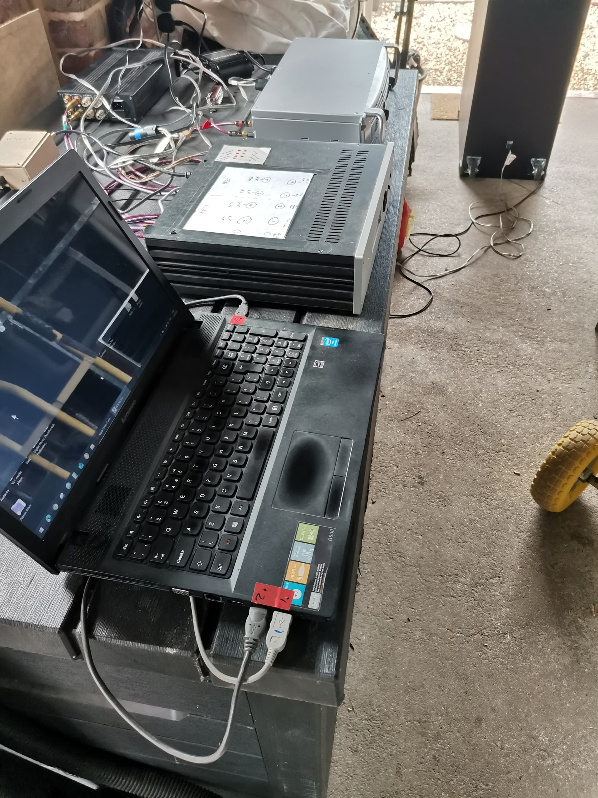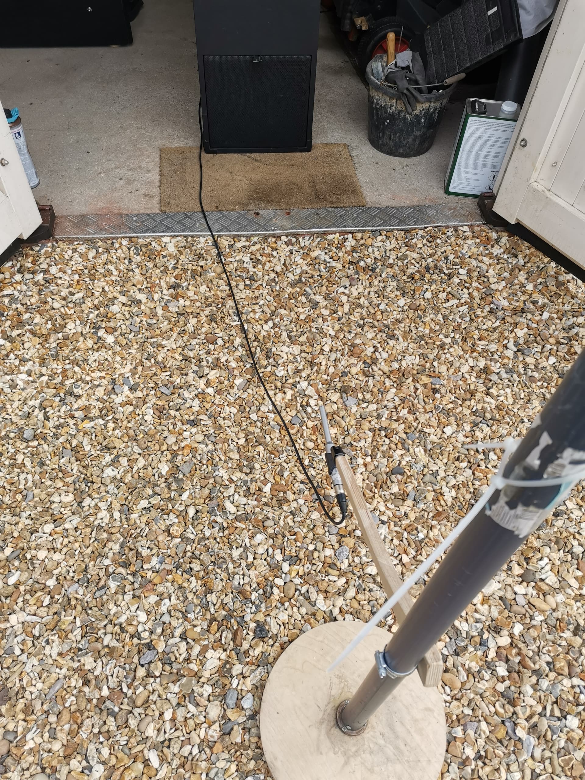 Lappy/WaveIO to Najda and Behringer power amp. Mic etc.