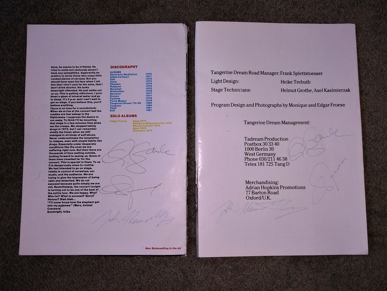 Looks like I was wrong about the Phaedra content, I certainly went to the gig because I had the album,