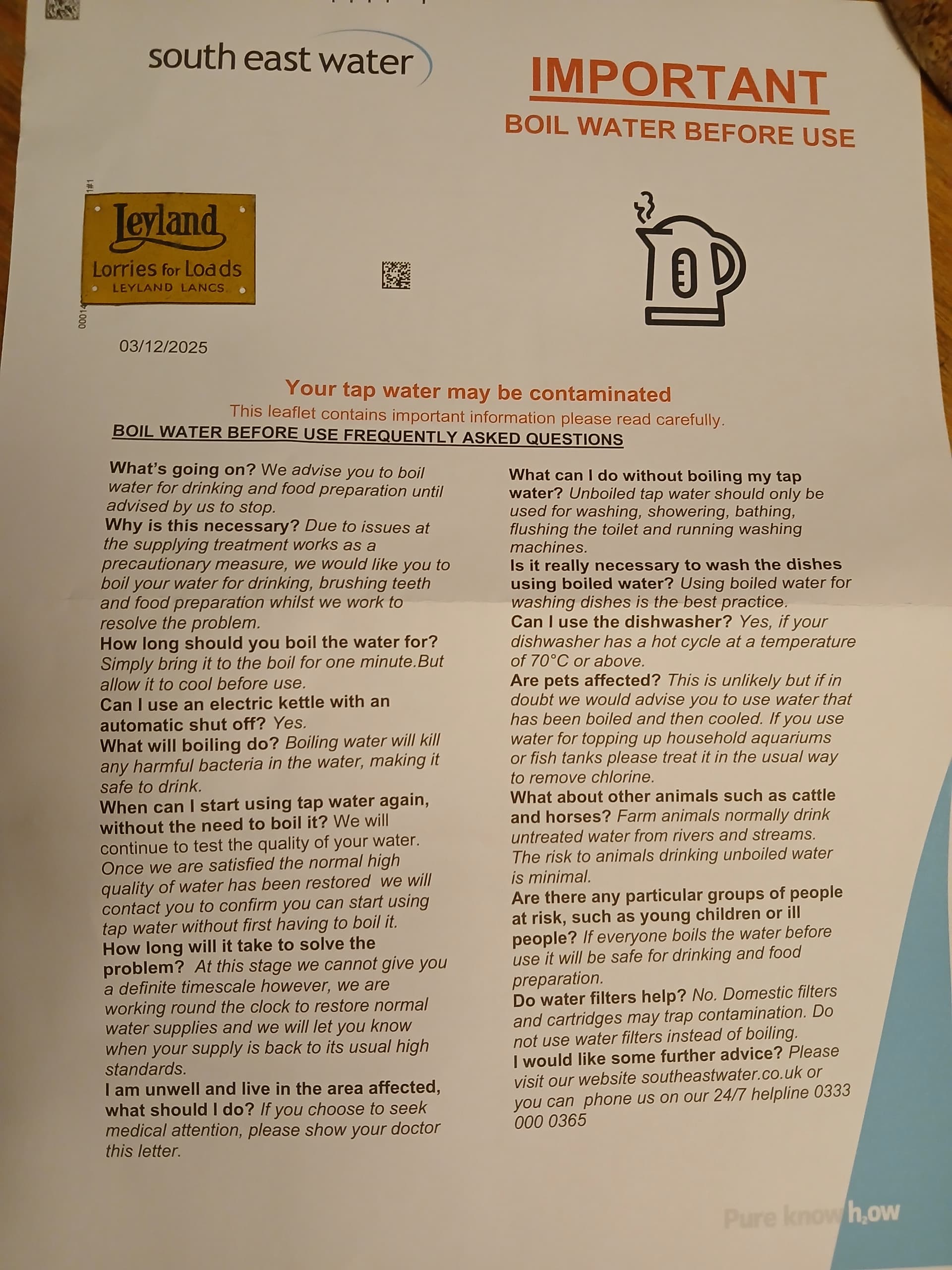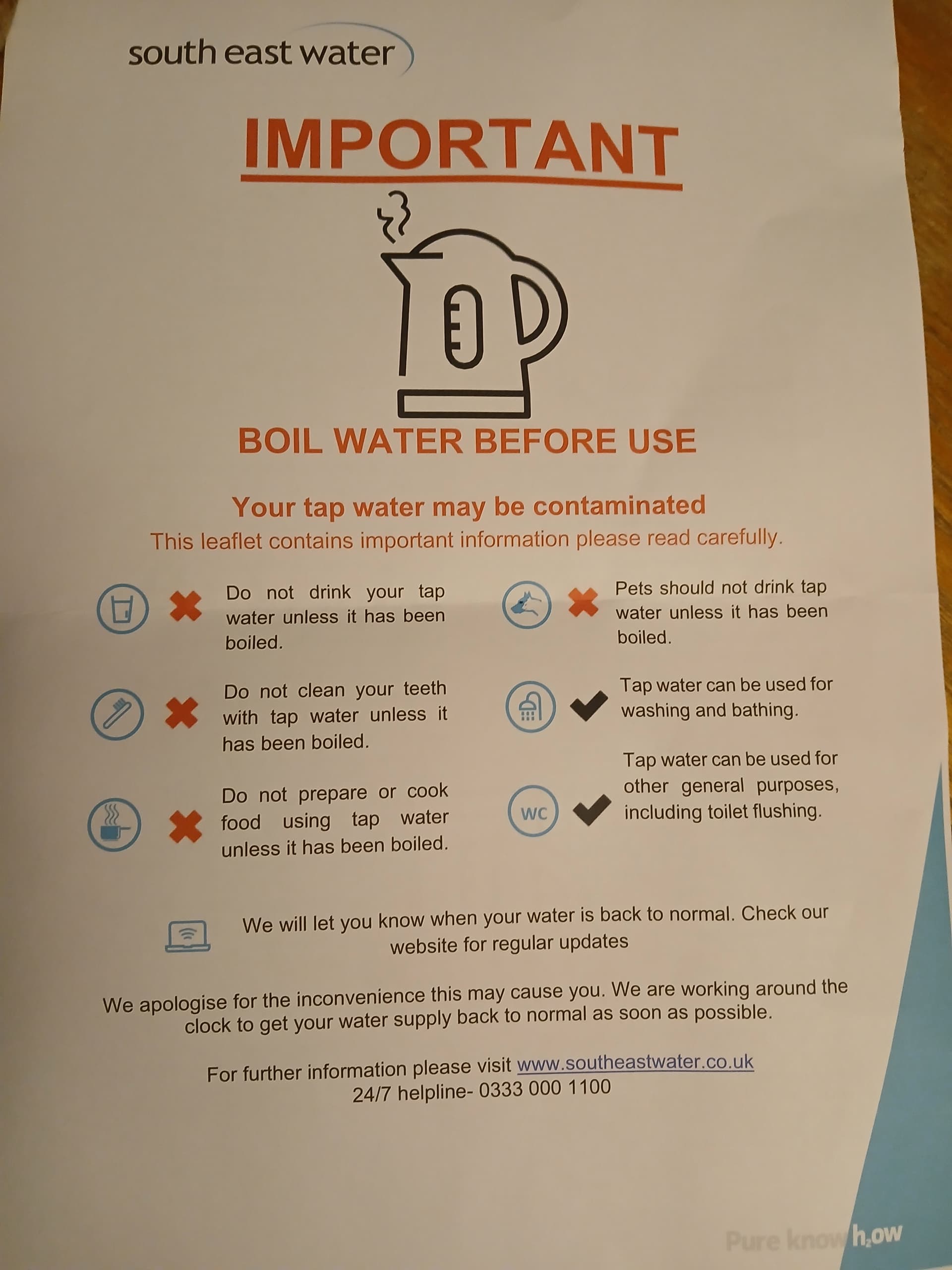 South West Water did similar to us down here earlier this year. I can’t recall exactly but I think they compensated those affected to about £50 per half day of outage so I think we got a £300 credit on our account. Not so bad then for residential customers but I don’t think hospitality businesses down here were remunerated quite as fully as they hoped to be though.