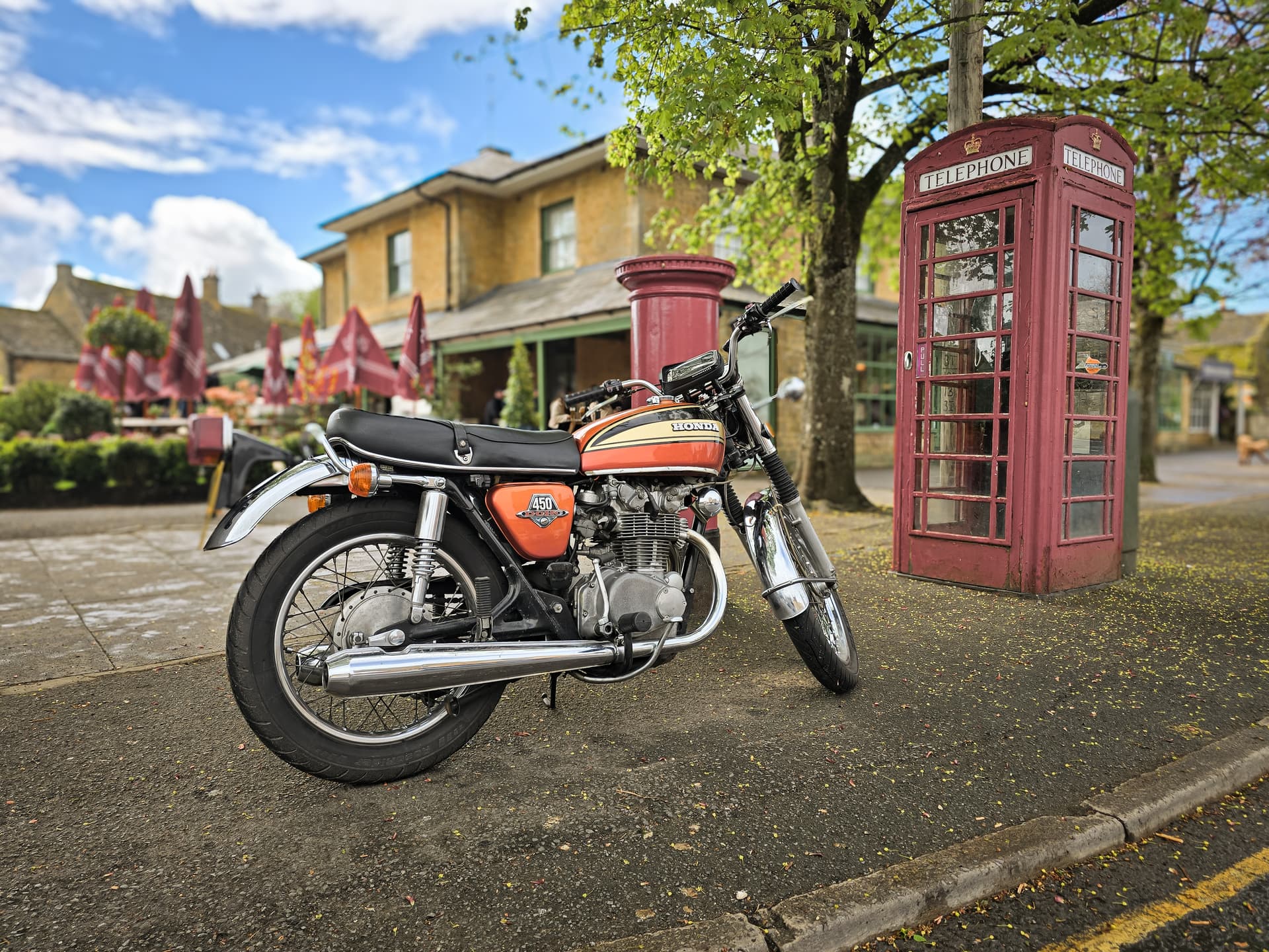 That’s a great scene; could have been taken any time from the 60s on, with the pillar box, phone box and the bike looking like new ![]()