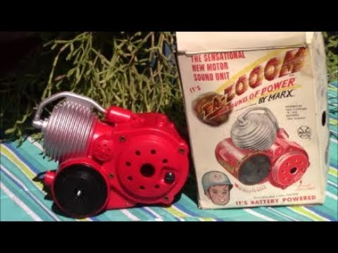 I recall either me or my brother, back in the 60âs having a fake, battery powered, plastic âengineâ that was somehow attached to our push bike that made a noise like a small petrol engine. I canât recall if the pitch of the noise changed somehow with speed or if there was a lever on the handle bar that allowed it.