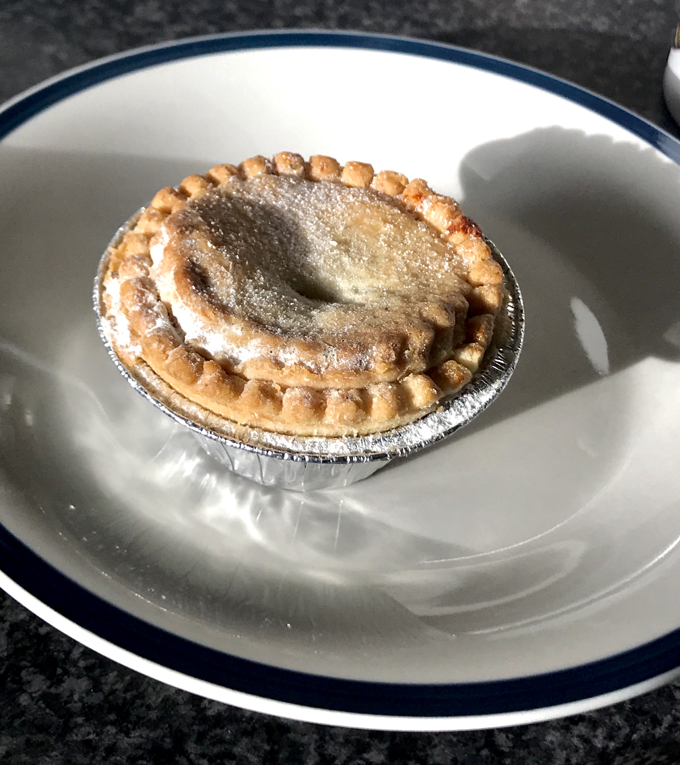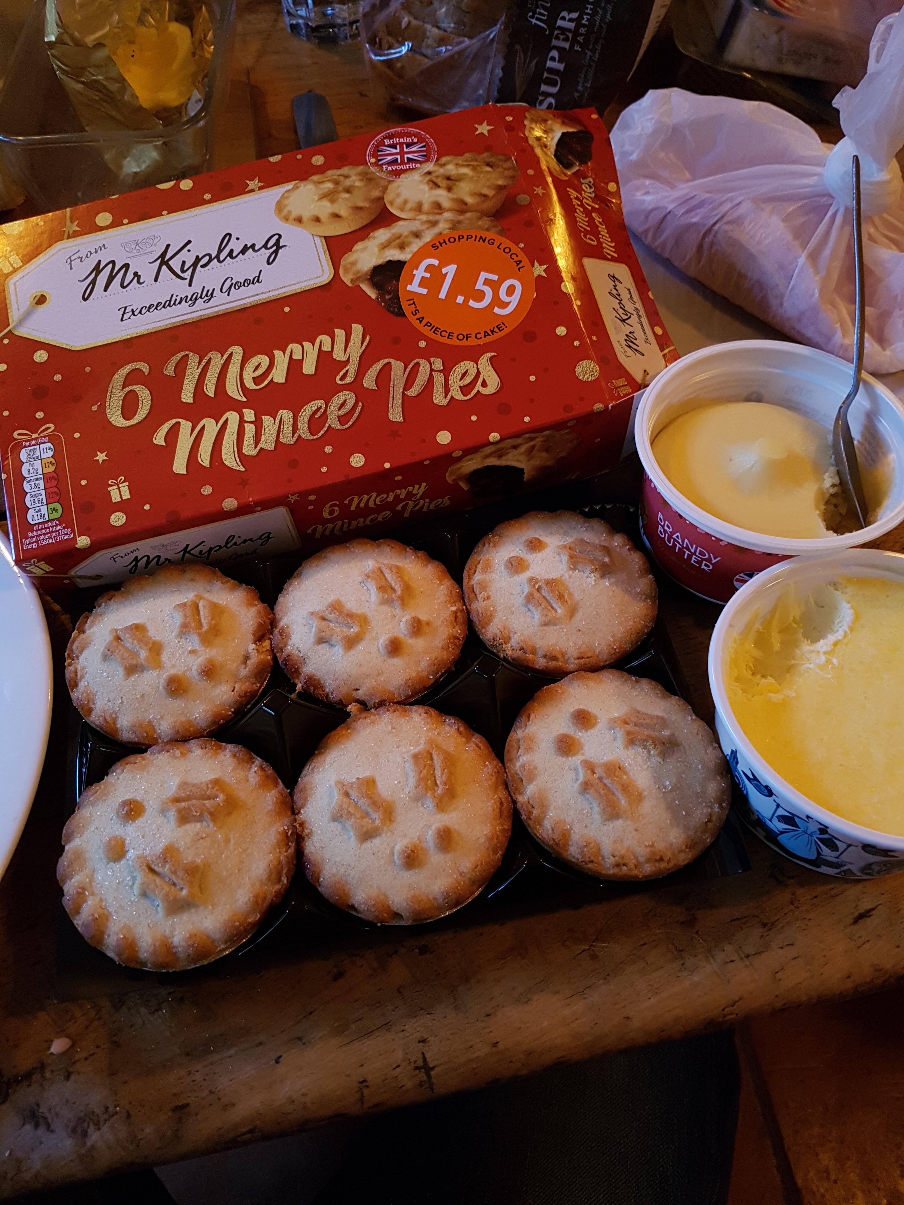 I have imagined that the boxed pies in supermarkets are made in some giant pie facility on the outskirts of Shanghai, as they are all pretty much the same. However it turns out that Kipling are made in Ashford, so are maybe more local to me than the ālocalā ones are! Surprisingly, these are alright and actually cooked. They have a tiny sprinkle of caster sugar on top and the same generic, over sweet mince but I am learning that the Devonians among us are onto something with the room tempā clotted shizzle; It quite nicely balances any over sweetness.