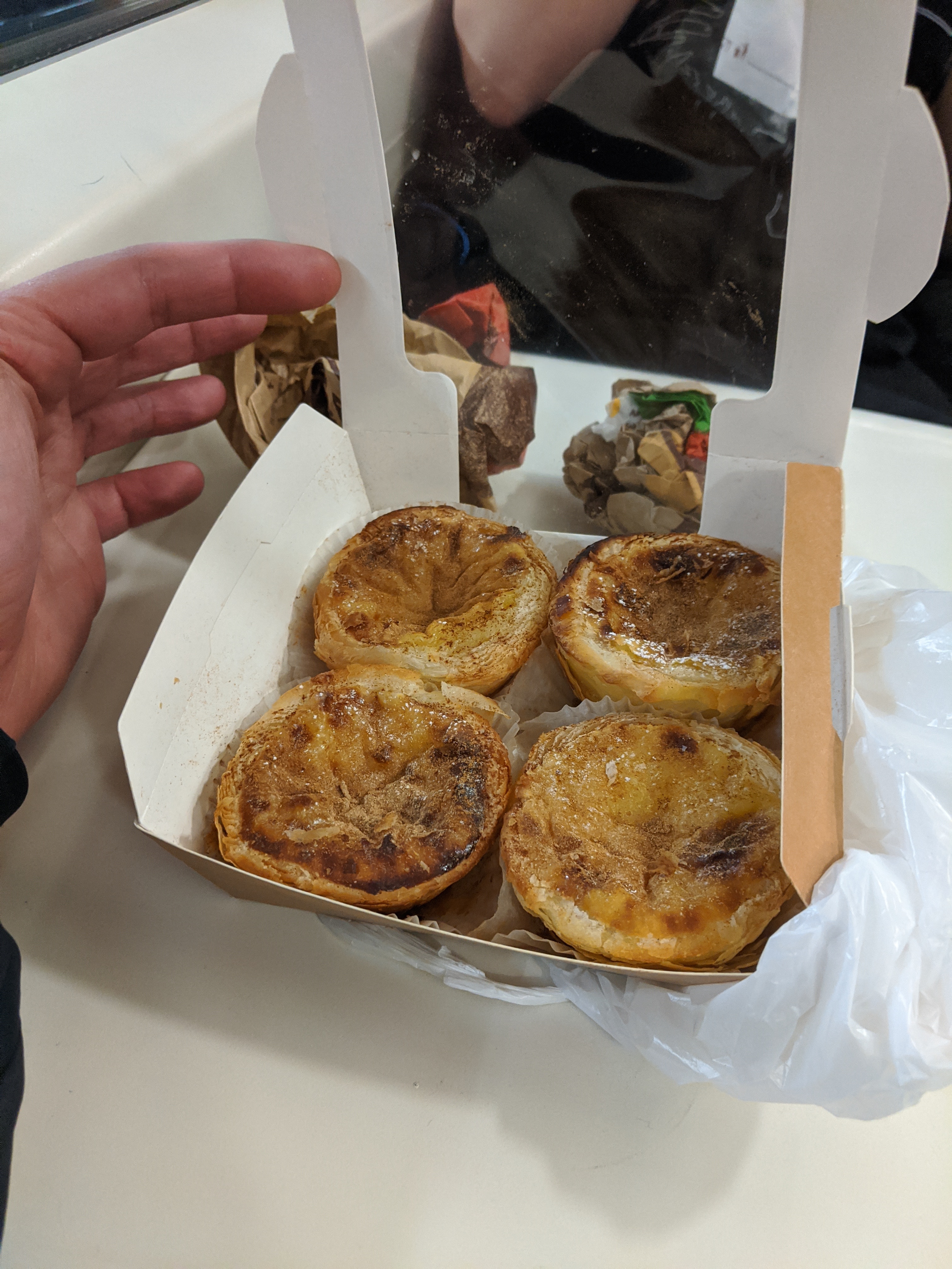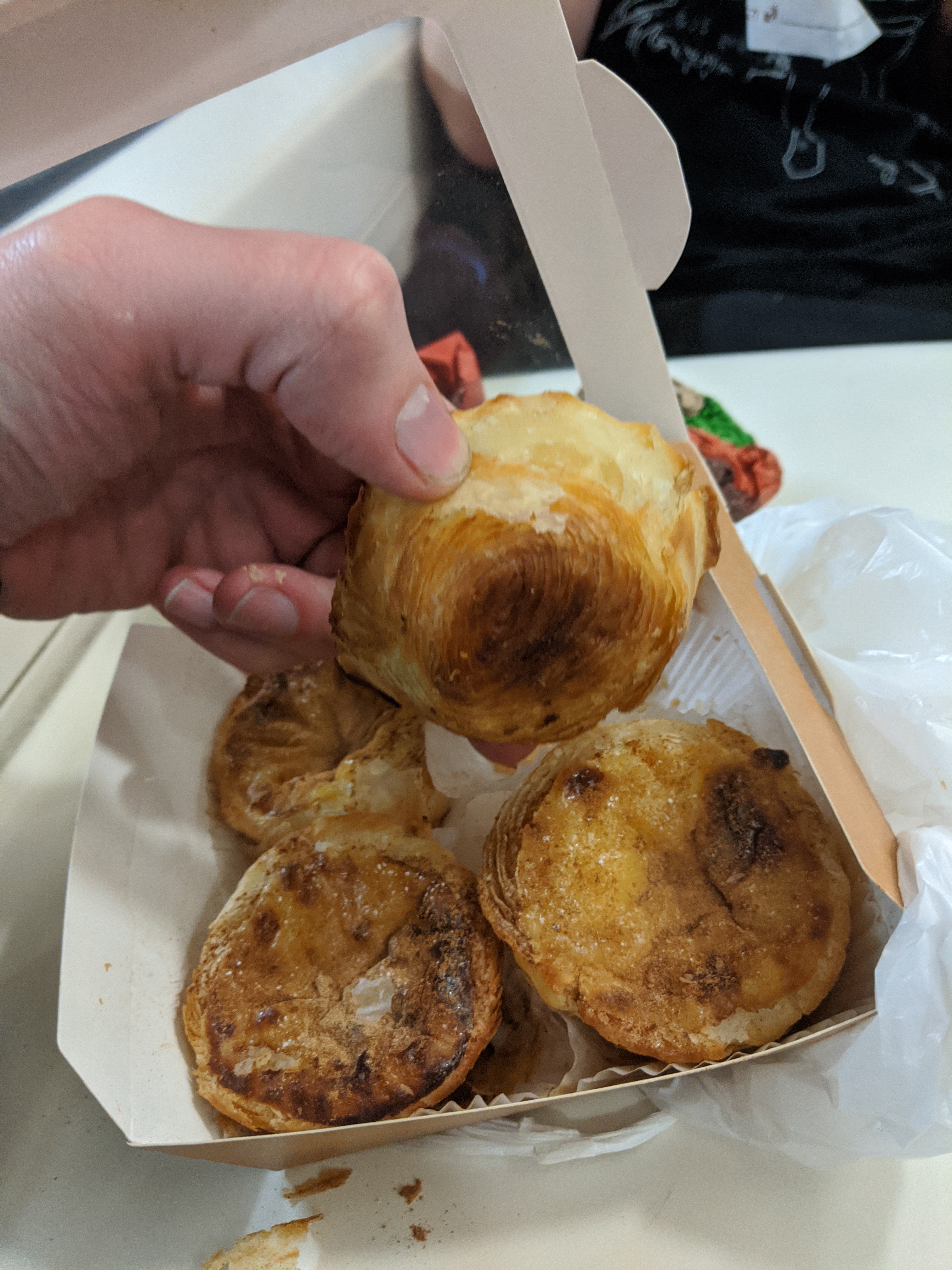 They are supplied by a Portuguese bakery frozen and I have sussed how to get them cooked just right. Pastry is super crunchy, and they have a lovely texture, with no over egginess and also have that lovely sweet melted sugar top. It probably helps that they’re not sitting on a shelf for hours.