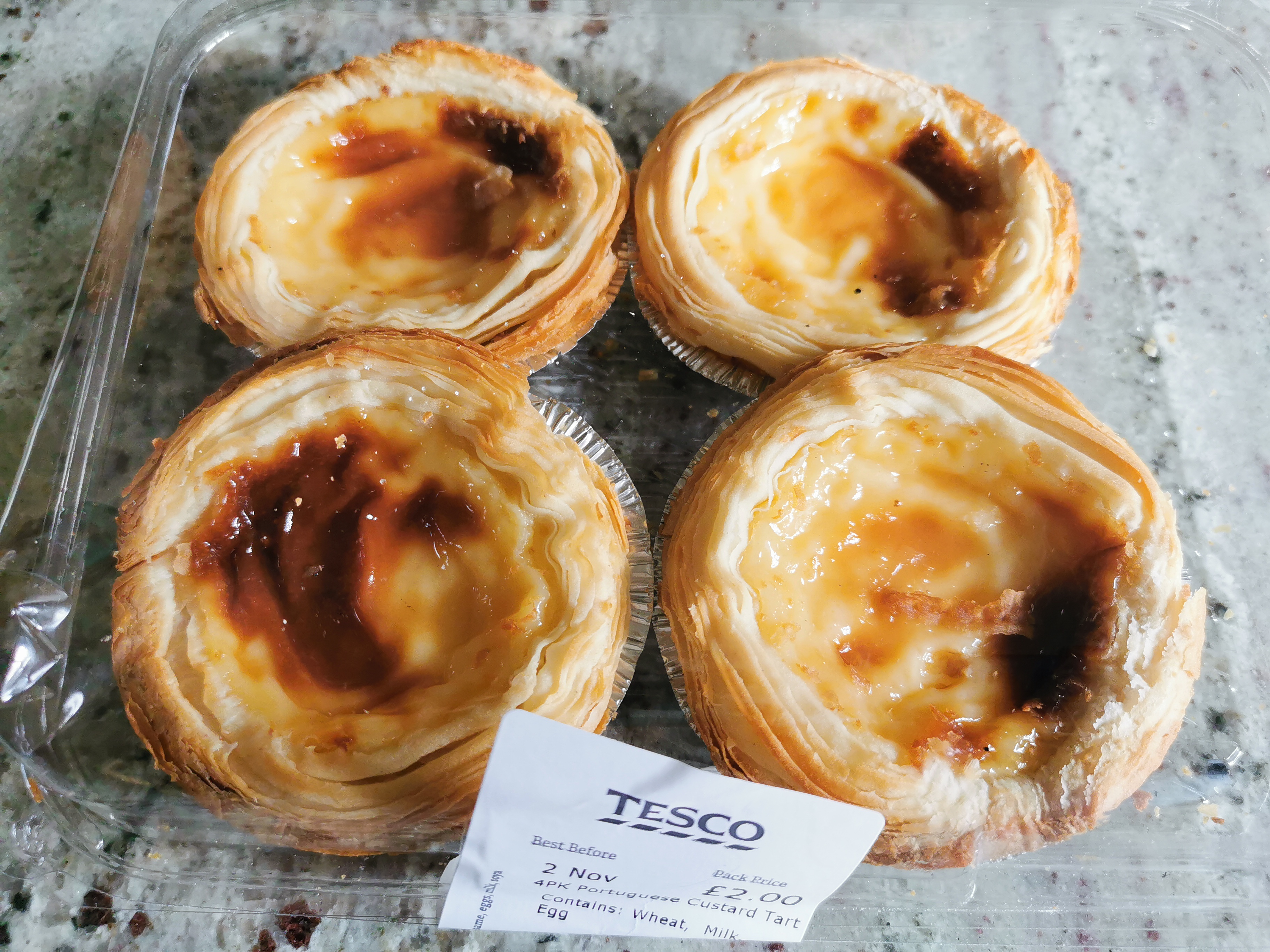 Simmons Baker, down the road. Crisp pastry nicely baked, soft custard and not too sweet on the top. As good I have had outside Portugal, and way better than anything from a supermarket