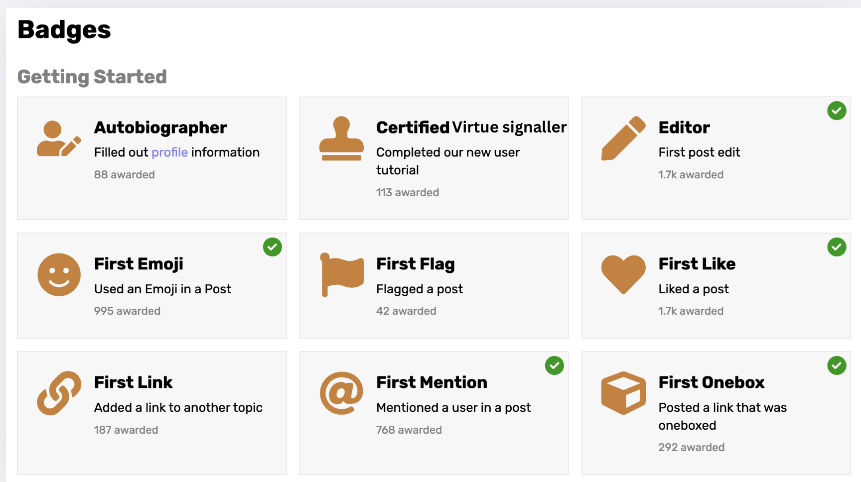 Does that mean there are 113 certified virtue signallers here, or can a person get more than one of the same badge?