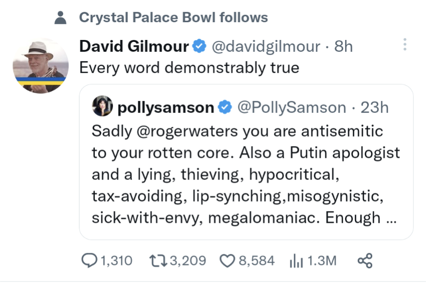 I hadn’t realised the full extent of Waters’ cuntiness, acid-casualty-ness can take many forms it seems…