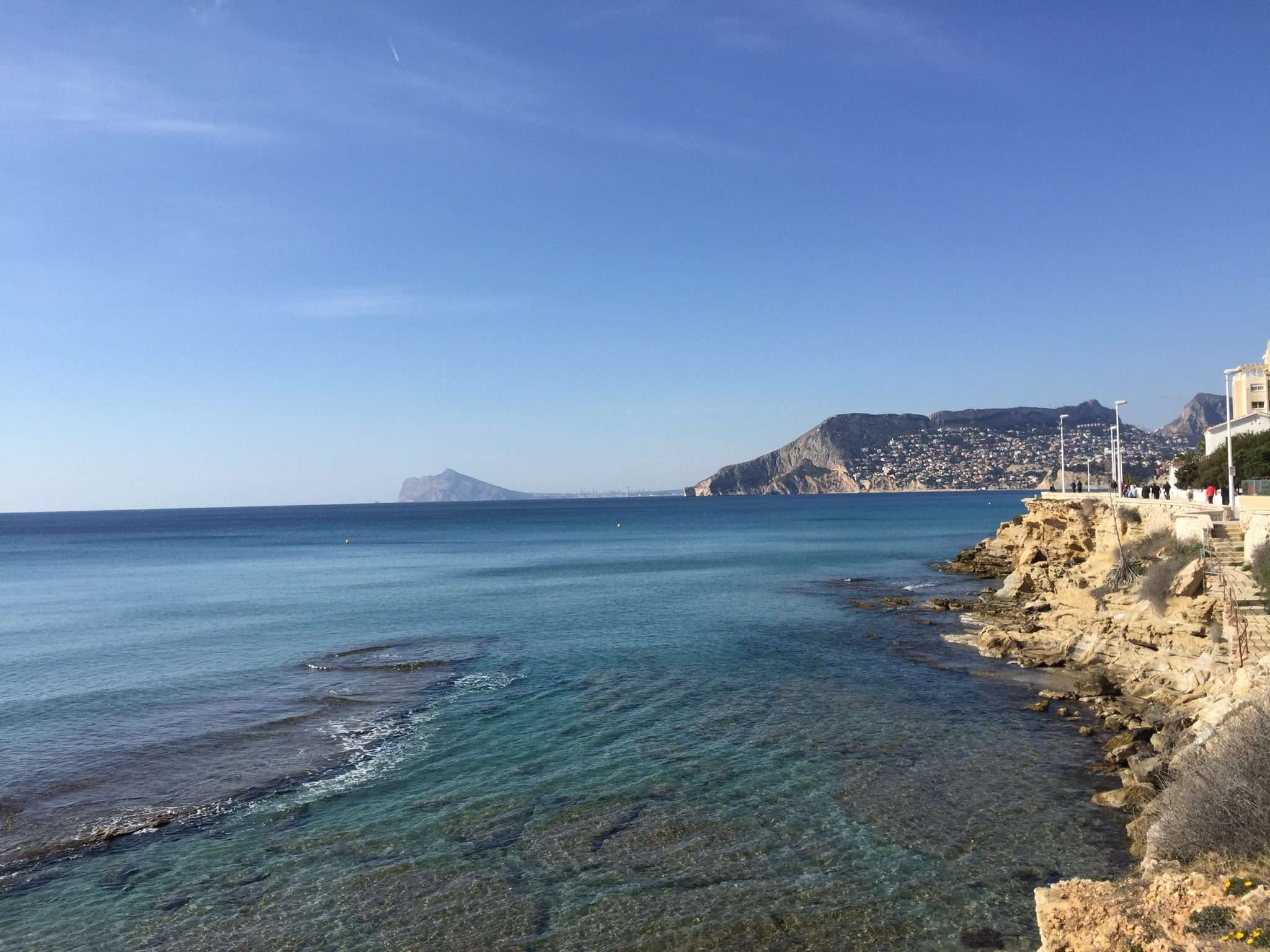 This photograph looks South from Calpe past Maryvilla towards the fleshy delights of Benidorm just barely visible inside the most southerly headland.
