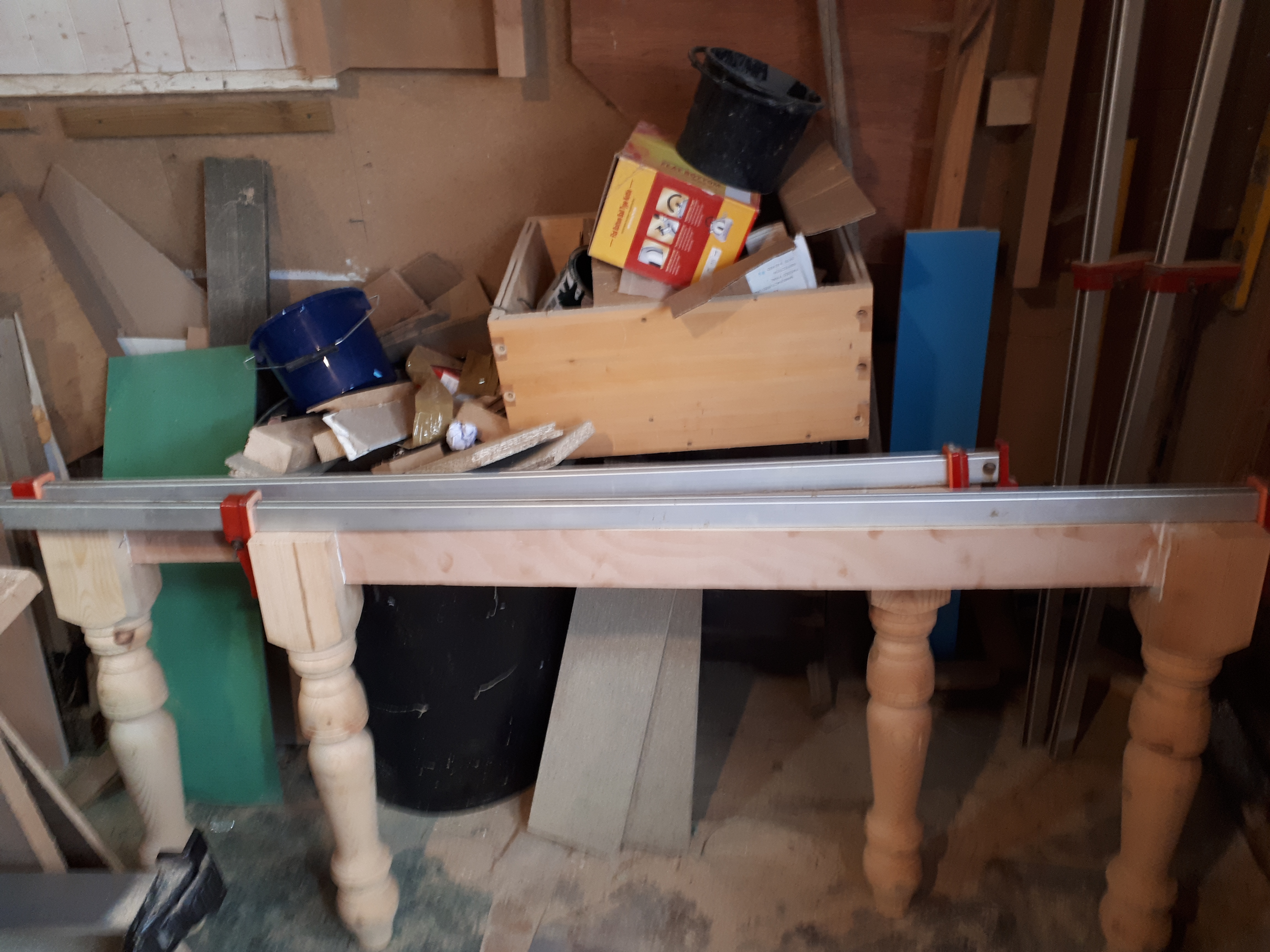 Now I’ll take the table top out to the workspace for a clean and sand then it’ll be refinished with food safe mineral oil.