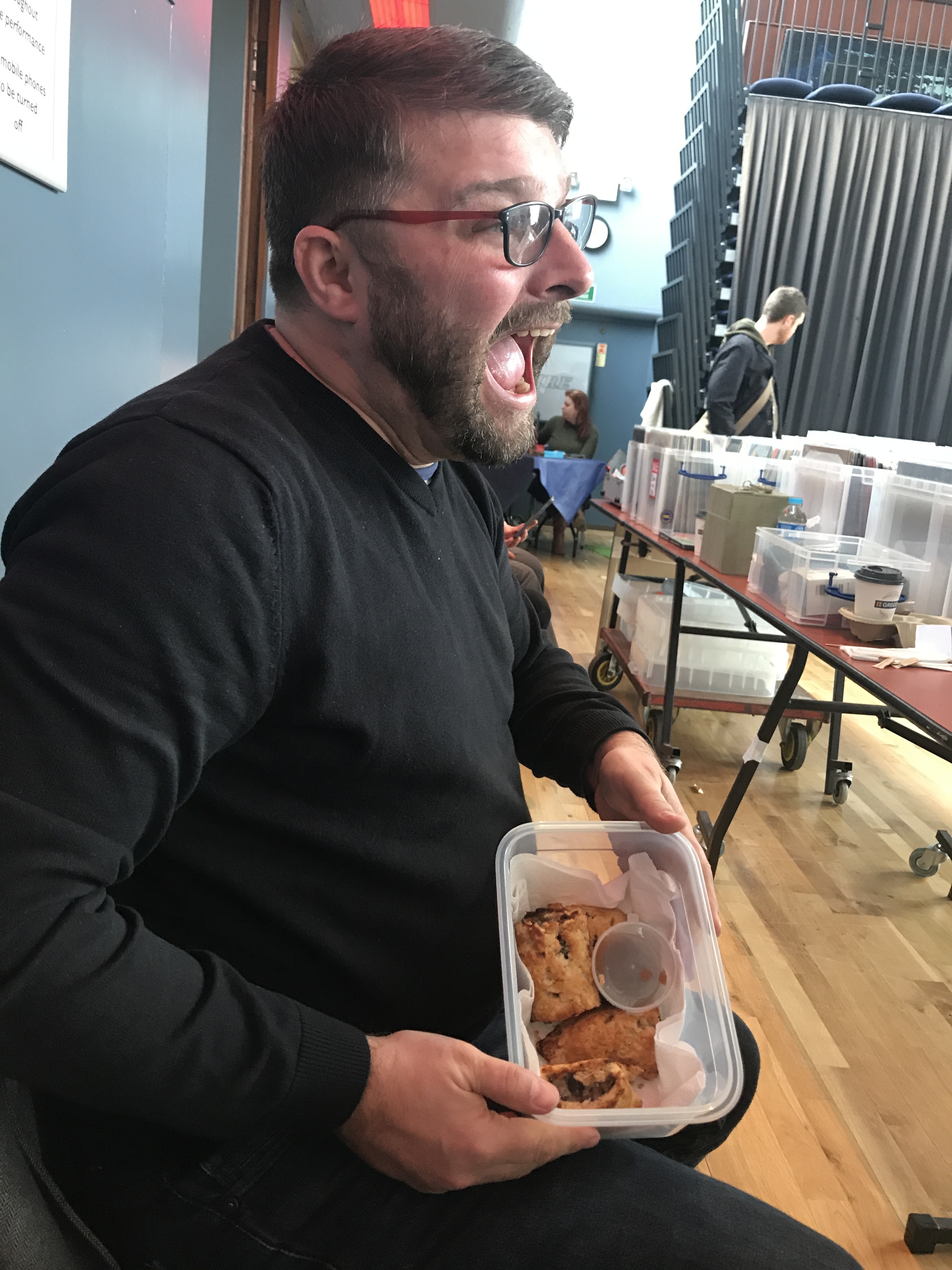 Do you think she was clutching her coat tightly enough to cause white coloured knuckles, as she knew you were looking at her sausage rolls?