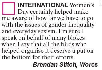 …admiring Mrs May’s efforts on International Women’s Day.