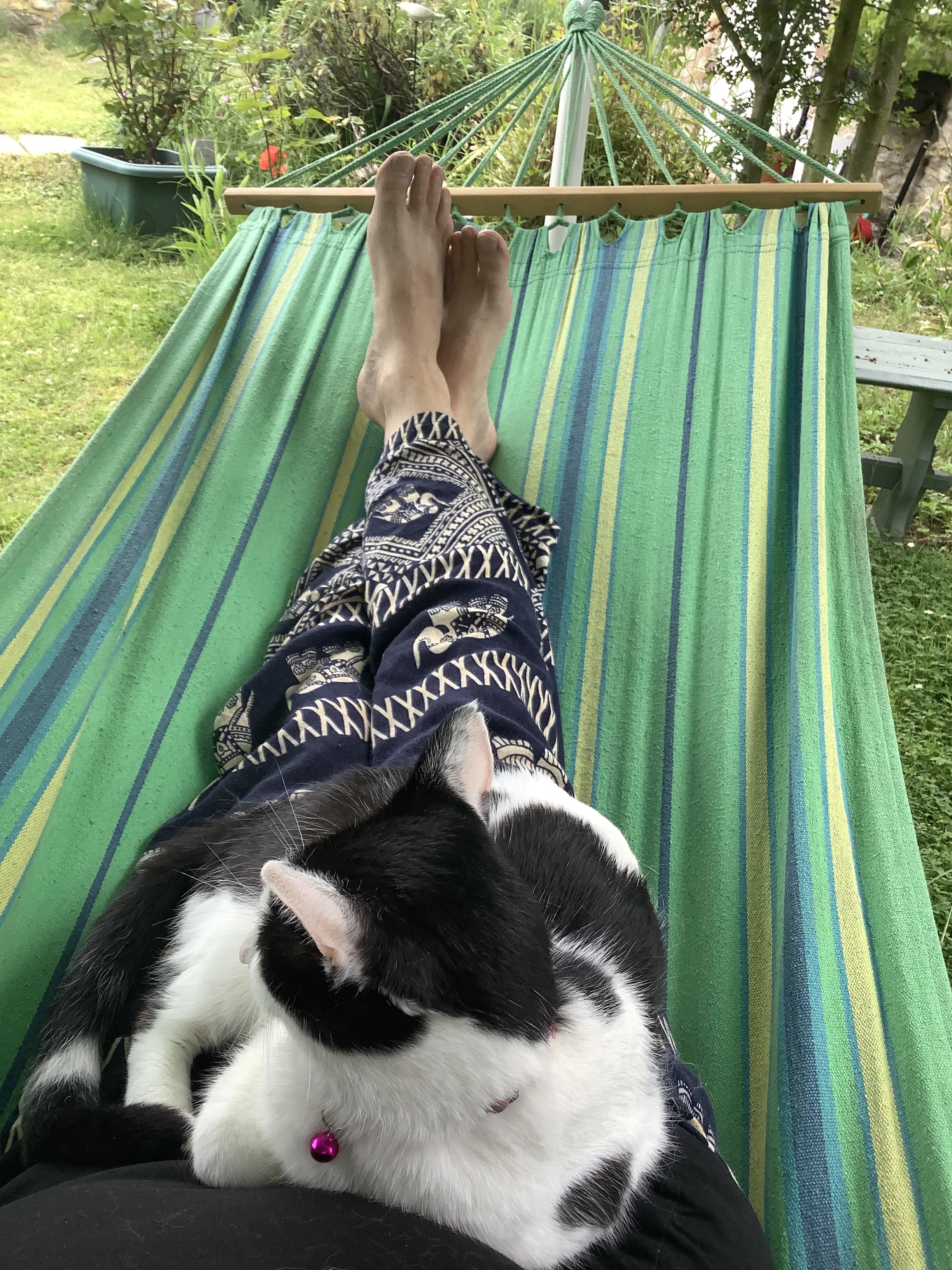 Cleared a patch in garden for my hammock, phone alarm set for British GP at 14:50 Just about to get on it. The GP might also be just as snoozy?