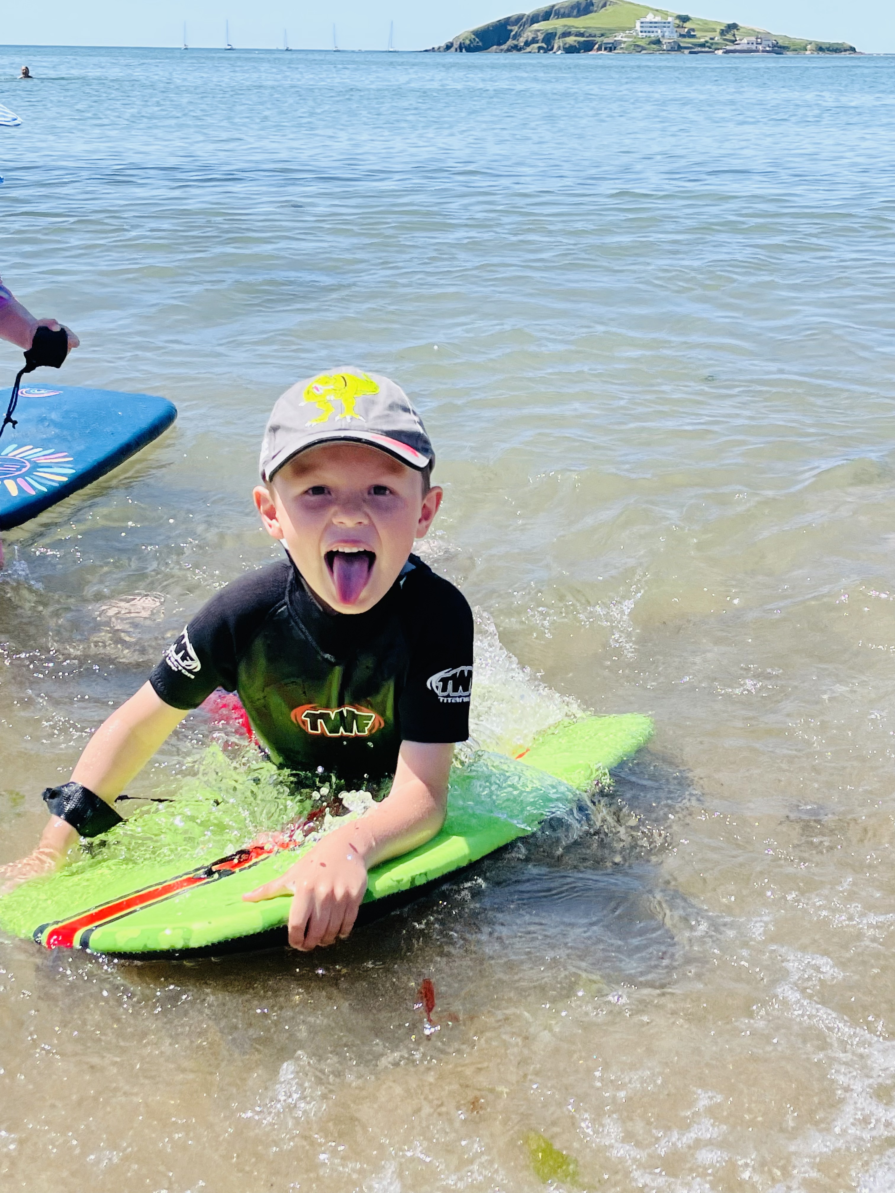 Got to Bantham at 8:45am found a spot to plot for the day and got busy with the kids trying to help them learn to bodyboard. The joy they had catching a wave was great. Had a nice swim which was lovely too.