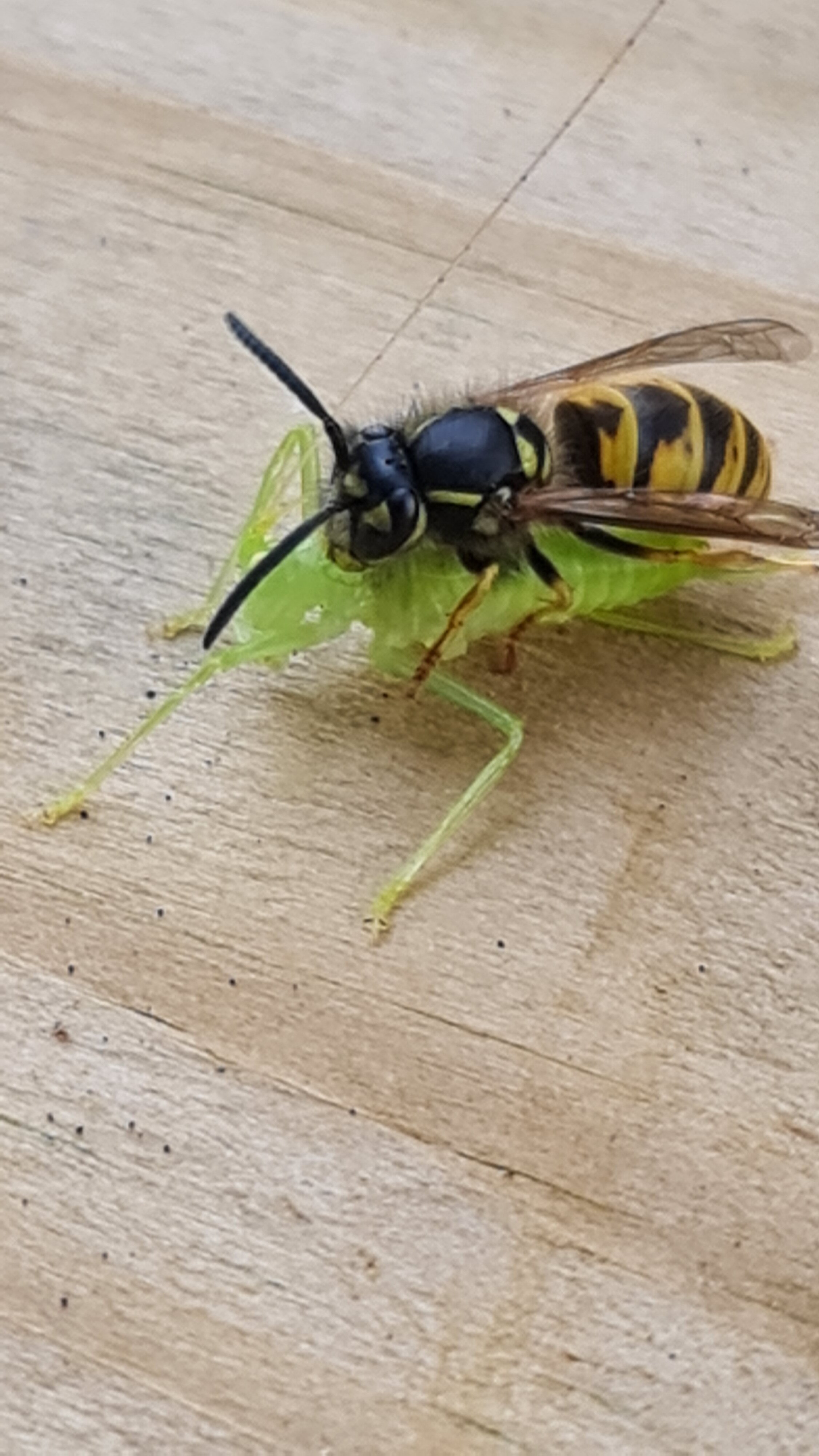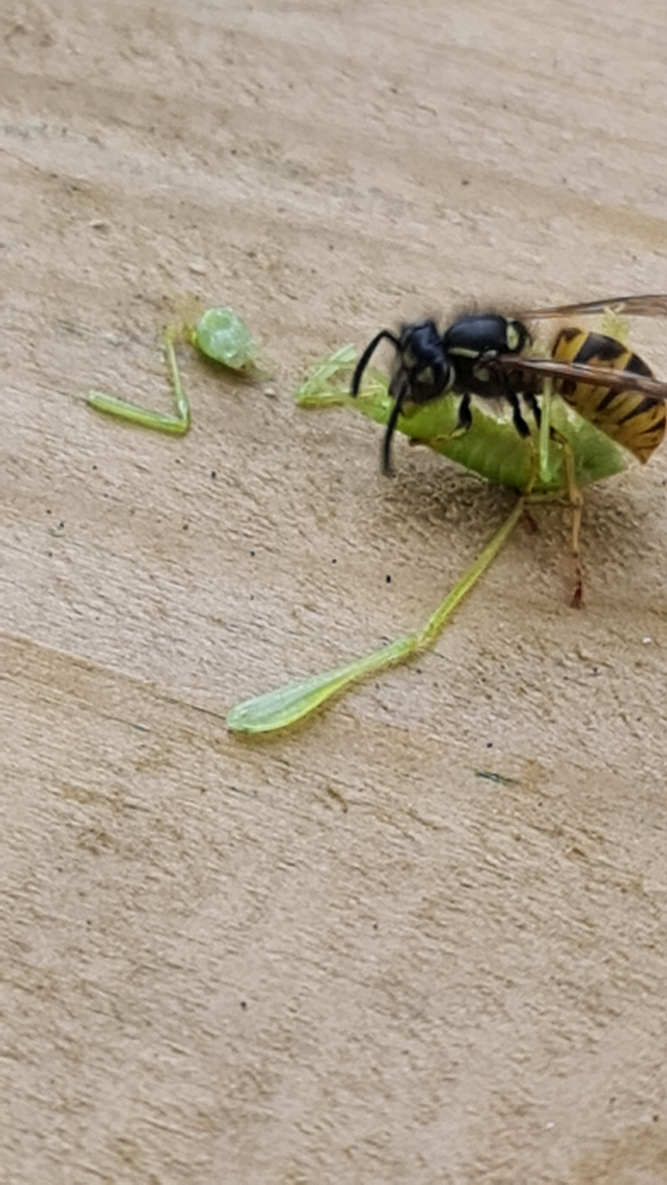 it was totally dismembered by the wasp, who flew off holding the torso. The wasp only just managed to take off with the weight of the torso.