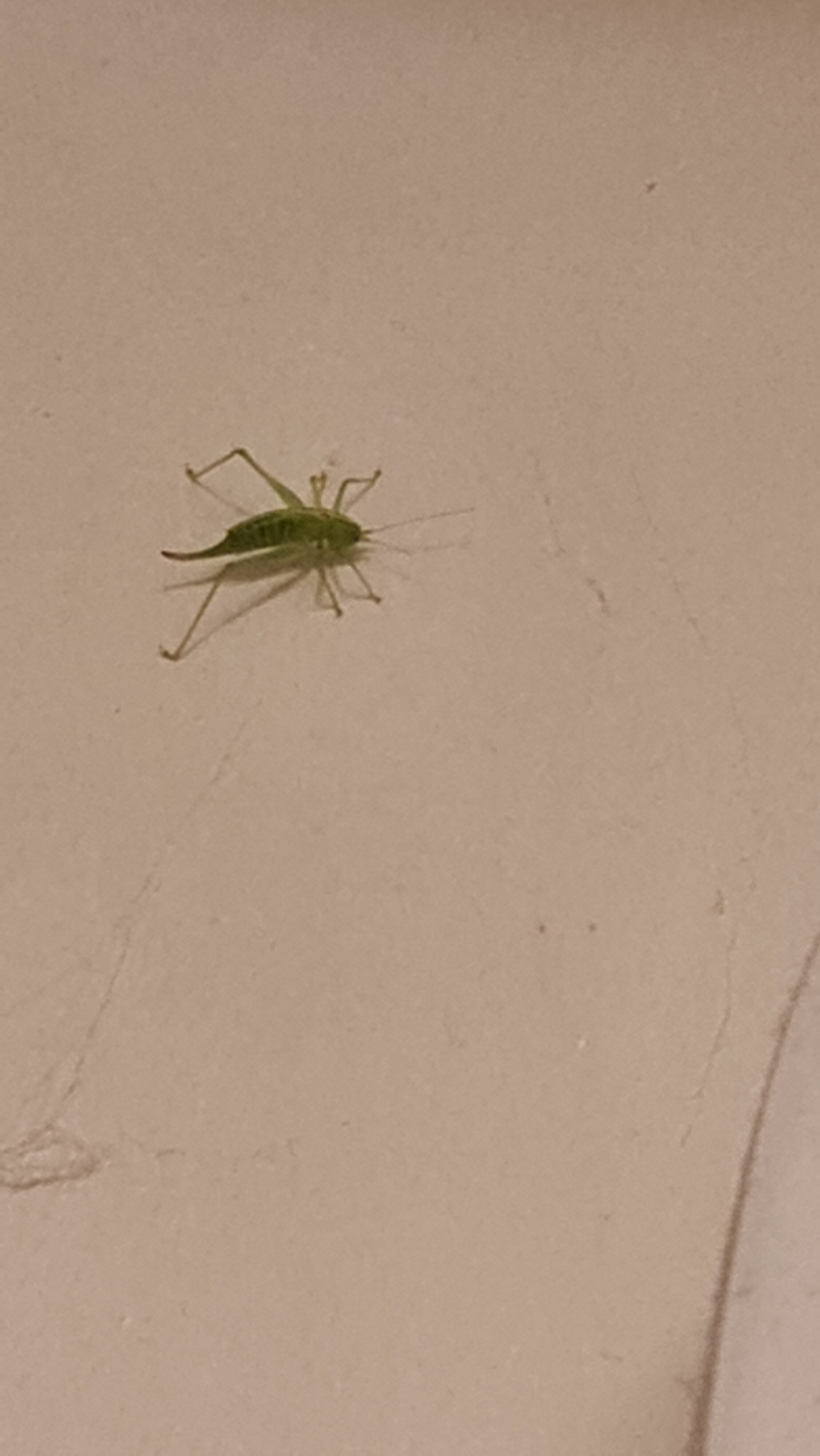 Speckled bush cricket. Looks like a female due to the curved ovipositor.