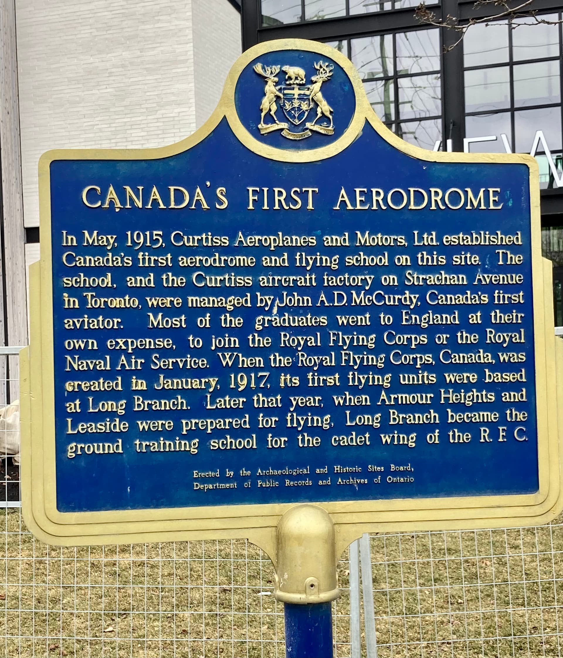 The J.A.D. McCurdy flight mentioned on the plaque was the first powered flight by a British Subject in the British Empire (1909). Alexander Graham Bell was involved in the project.