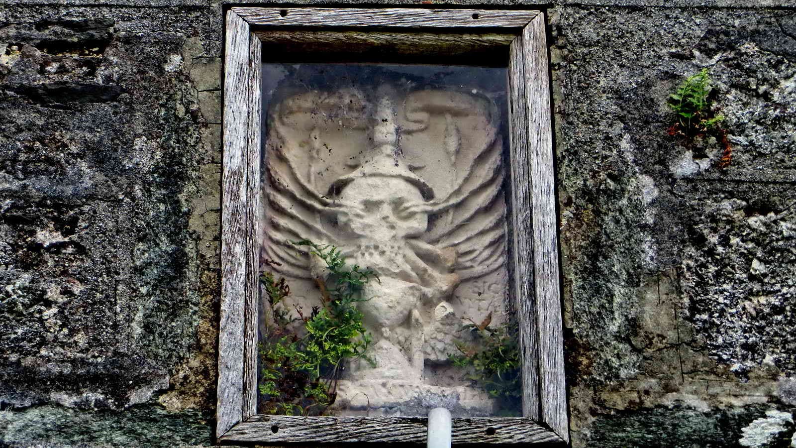 I forgot to take a picture of this sculpture above the church entrance. (stock pic)