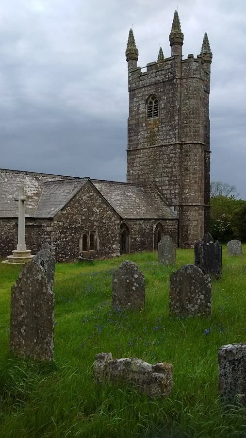 In what is now a private garden next to the churchyard there is a not so ancient stone circle but in the centre of that lies a large granite slab with a heavy metal ring. It was here that a bear or bull might be tied and baited for sport using the local dogs.