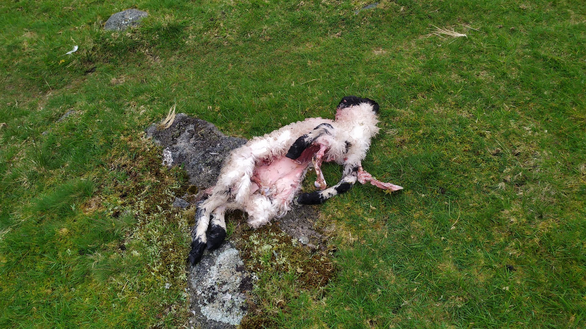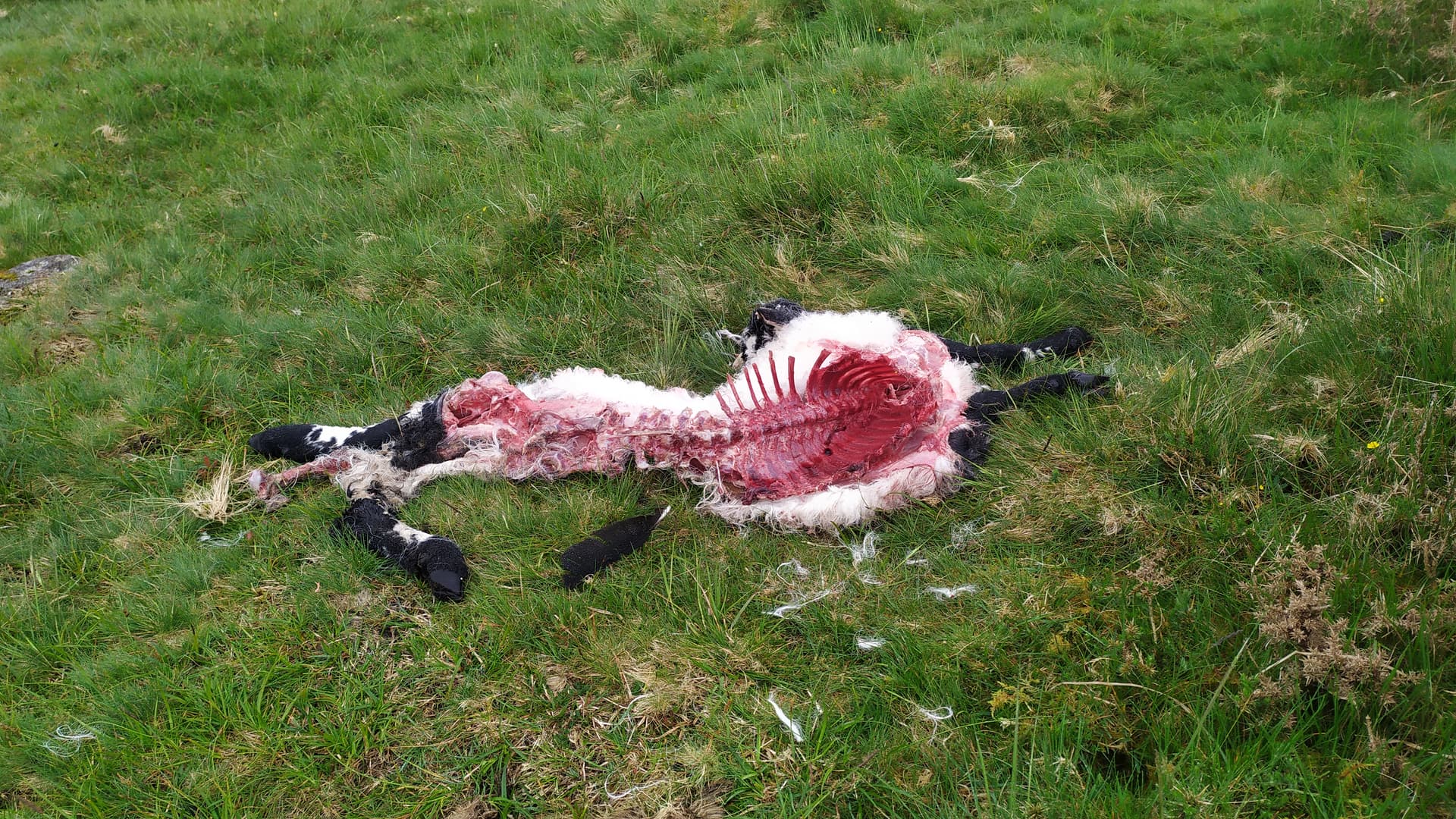 A surprise on the way down, we came across two freshly eviscerated lambs with guts completely gone. They were about 200m apart. One had obviously been dragged 20m or so to where it was left. I don’t think this is the work of a dog or fox.