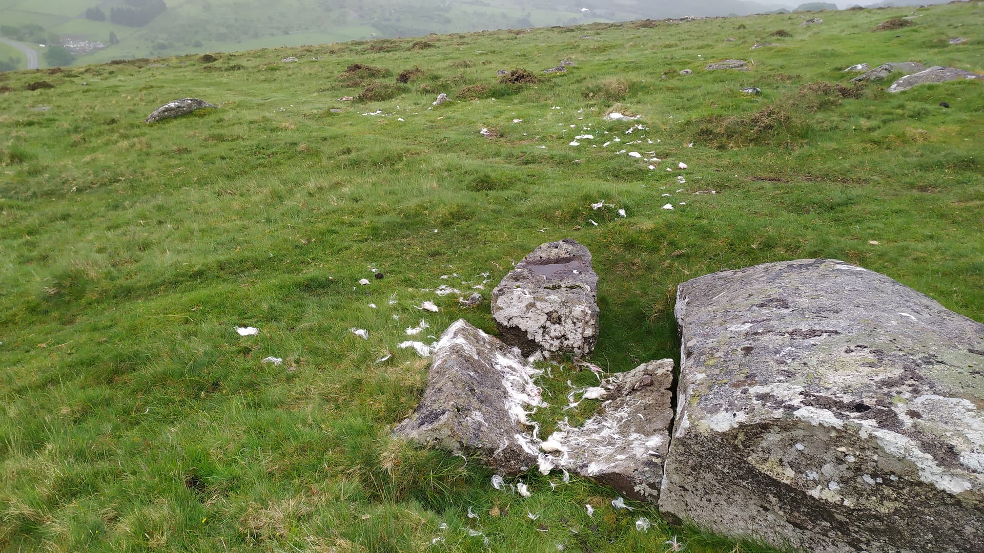 Trail of wool and bits to the 2nd carcass.