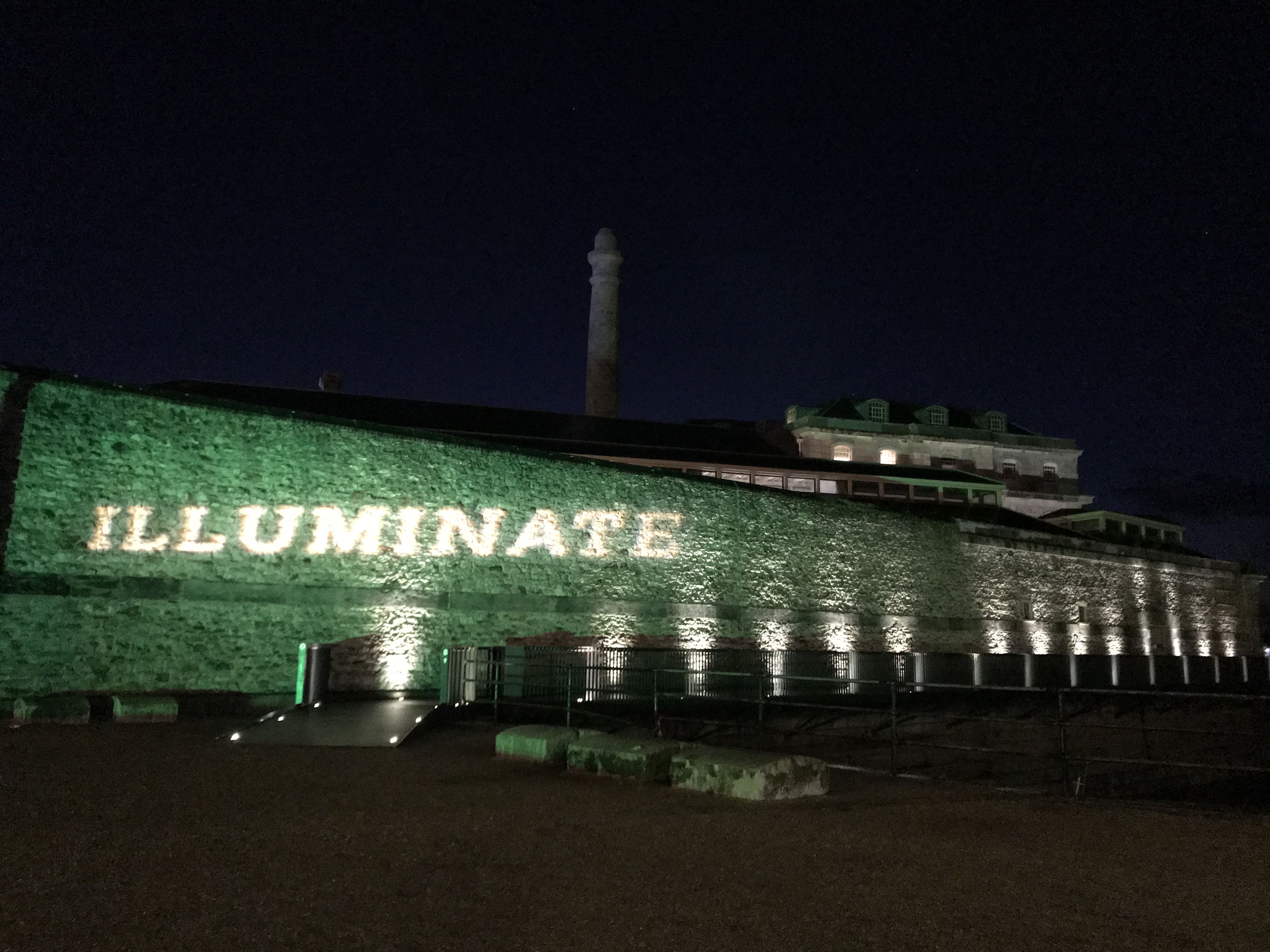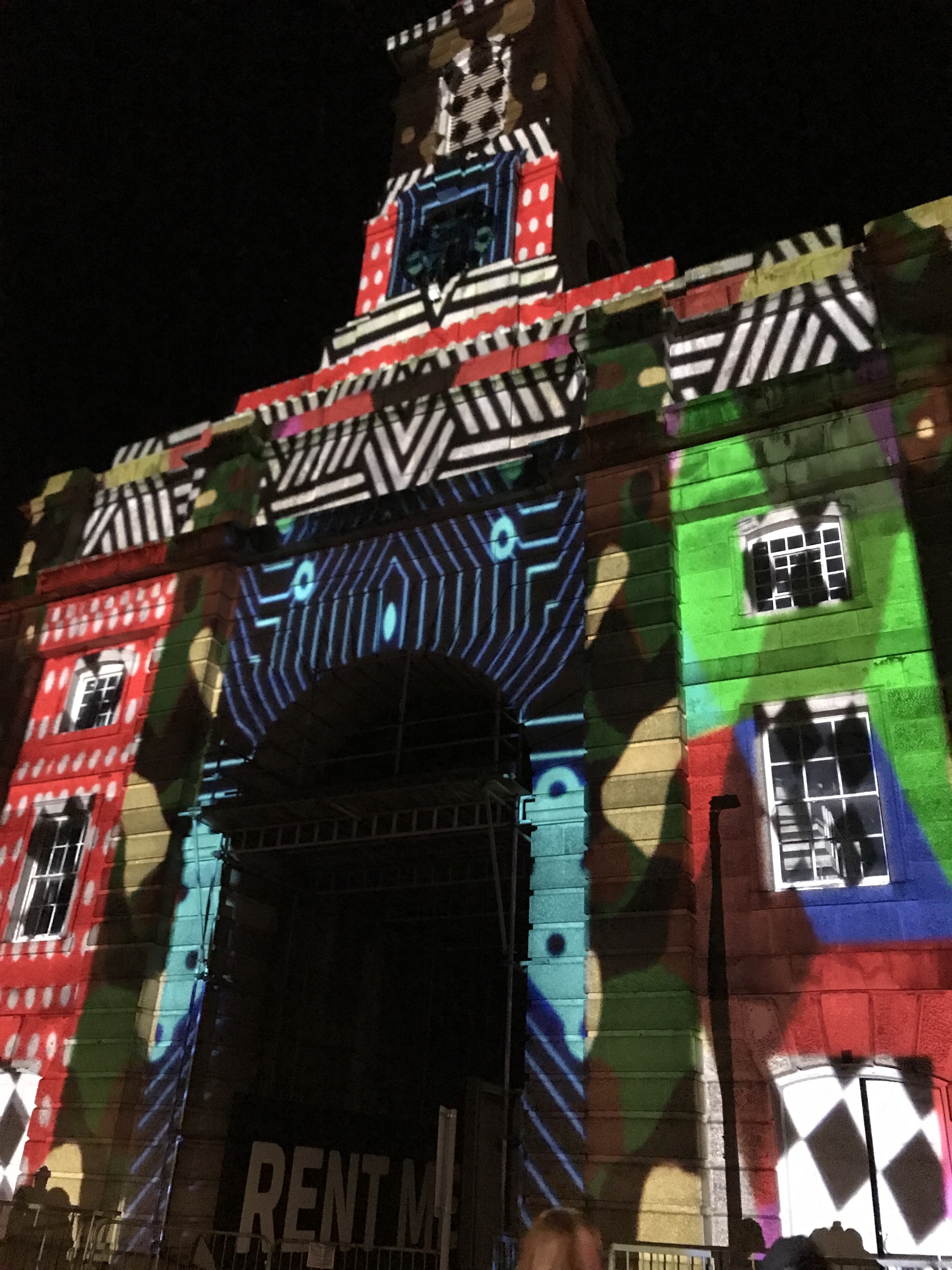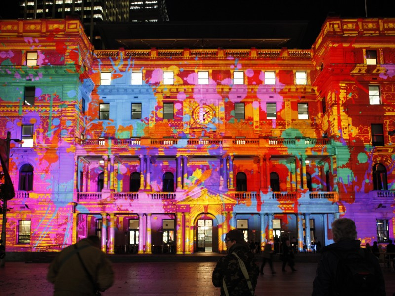 I saw a similar thing in Sydney at the Festival of Light in June 2011. They projected an image of the Customs House onto the Customs House, and then very slowly the image melted in the heat. Later on the image ran away like sand out of an hourglass. A bloke behind me thought he was having an acid flashback. Here is a shot of the Custom House: