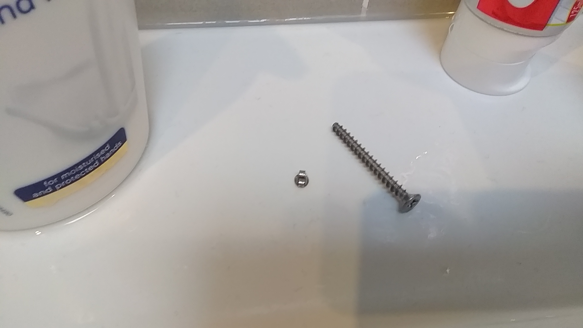 Plunge 3: screw (presumably dropped by bathroom fitters) appears