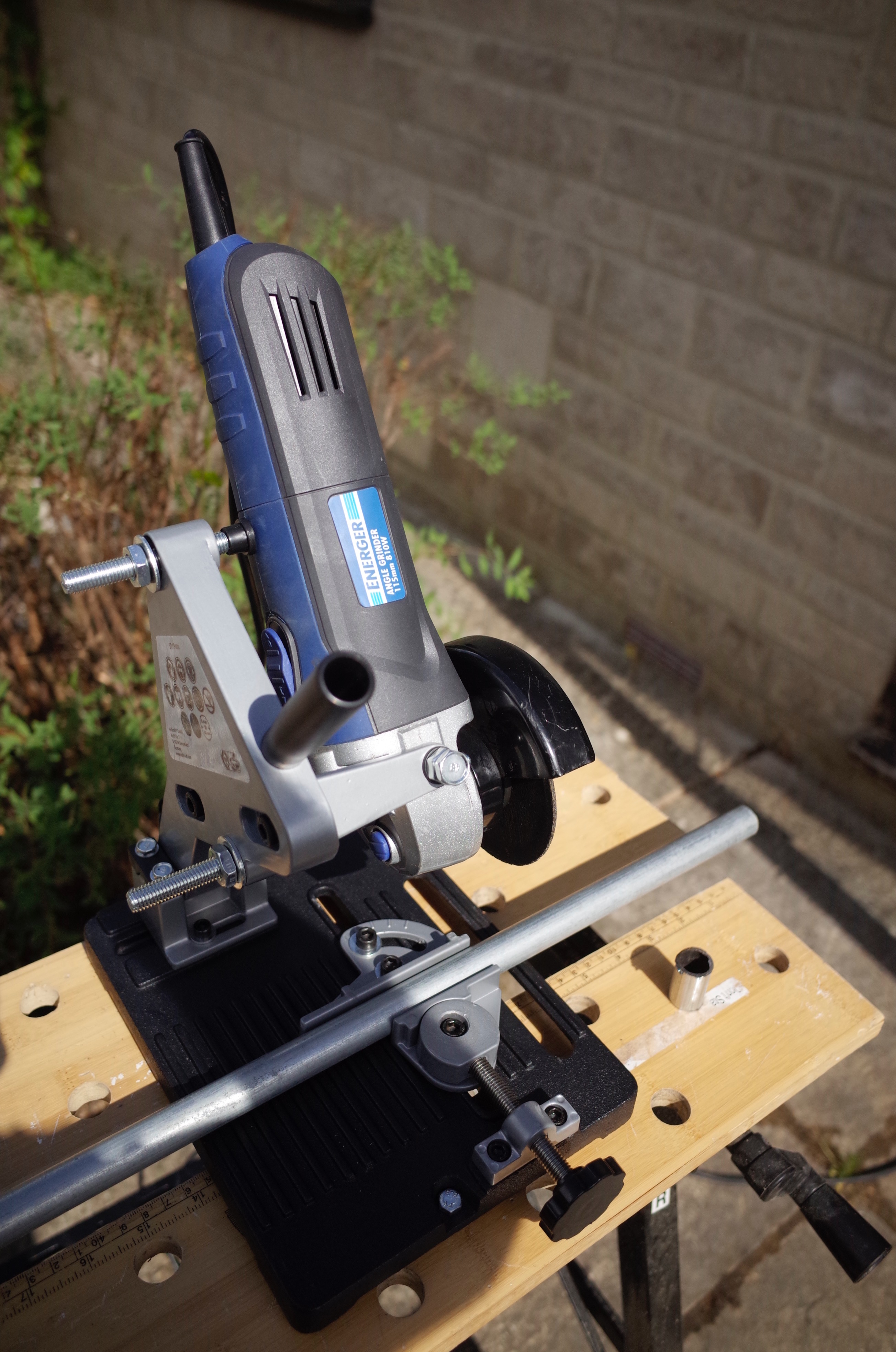 Just arrived a fixture that turns a angle grinder into a mini chop saw. Decent enough for £25