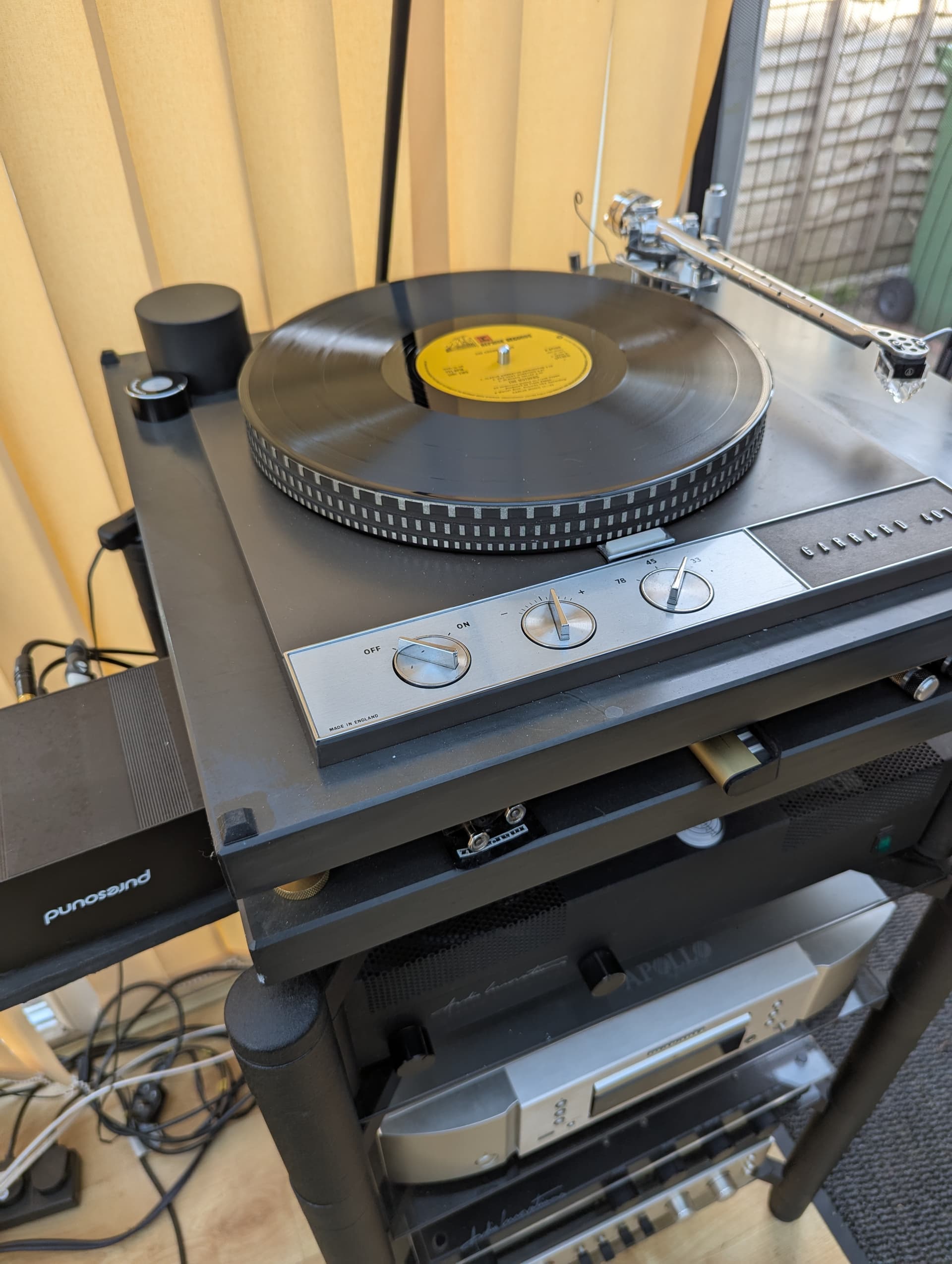 It turned up for review and was sufficiently good at test work, I bought it and it’s never left. Since it arrived the sub platter, platter and PSU have been changed and it’s had various arms on it. It’s currently off the rack because it doesn’t fit (no space for said PSU) and because it needs the 309 which came off the Gyro fitting.