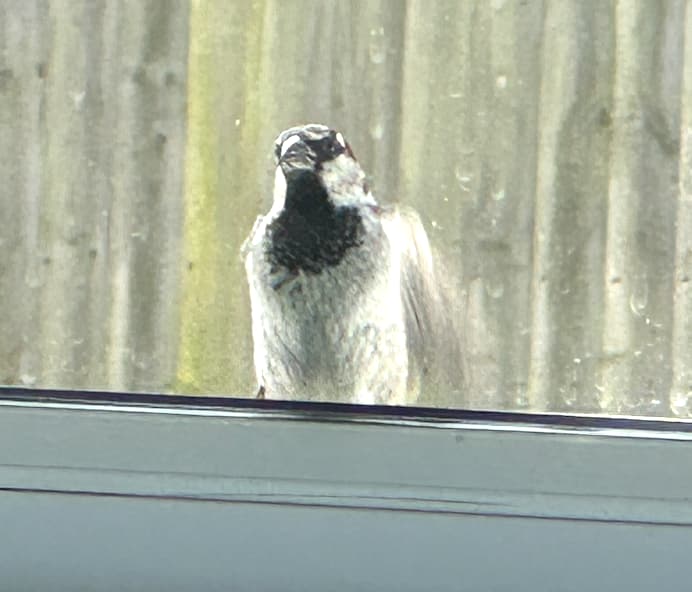 We also had long-tailed tits and a pheasant doing likewise earlier in the year. Hawk-shaped window stickers did exactly fuck-all - only the passing of the breeding season / drop in birdbrain testosterone levels seems to help…