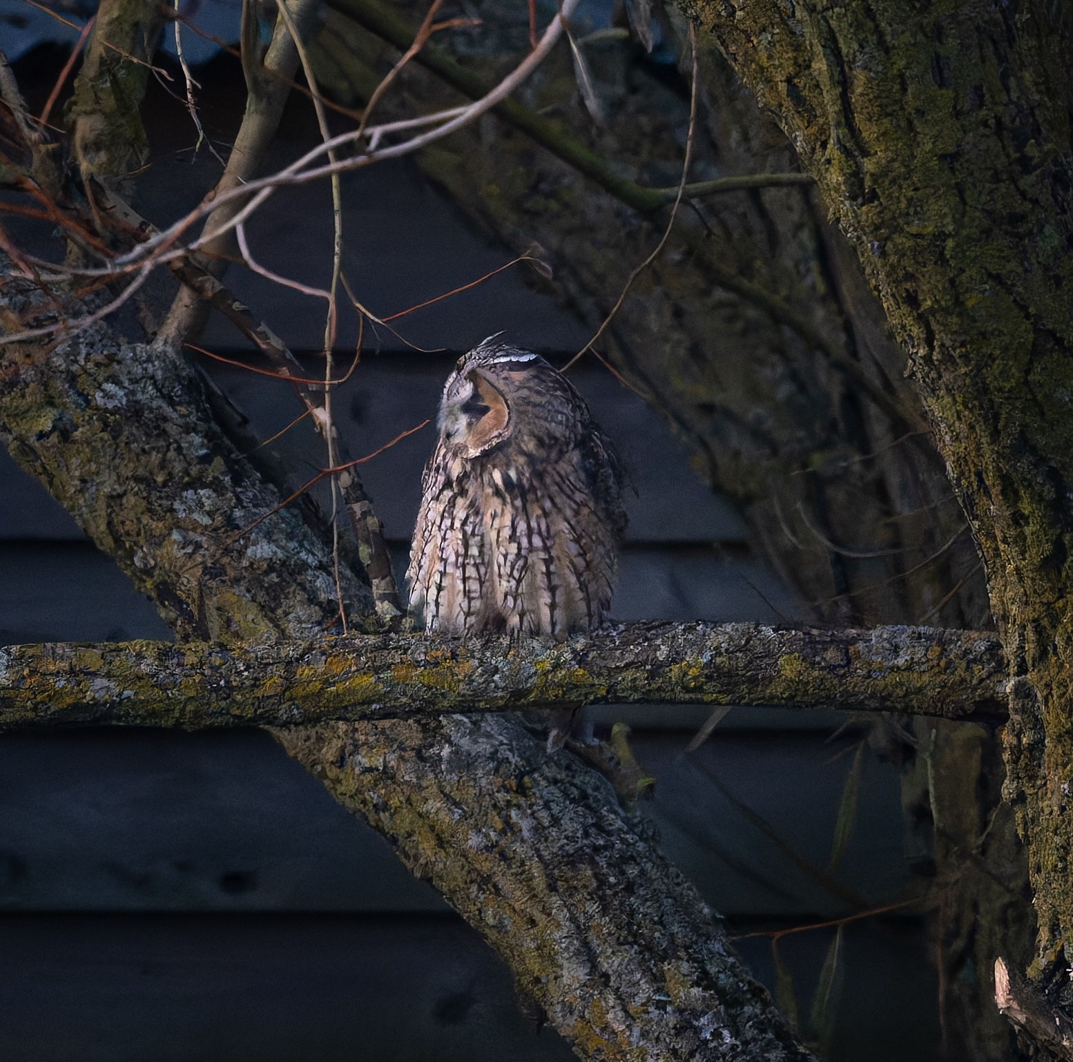 They’re so incredibly difficult to see, being nocturnal. Usually you inadvertently flush one (as I did today) from its roost and it flies off, never to be seen again. When this one flew I had a very good idea where it would go (a site that has held winter roosting birds in the past) so I managed to get a few shots before retreating and leaving it in peace. Very fortunate.