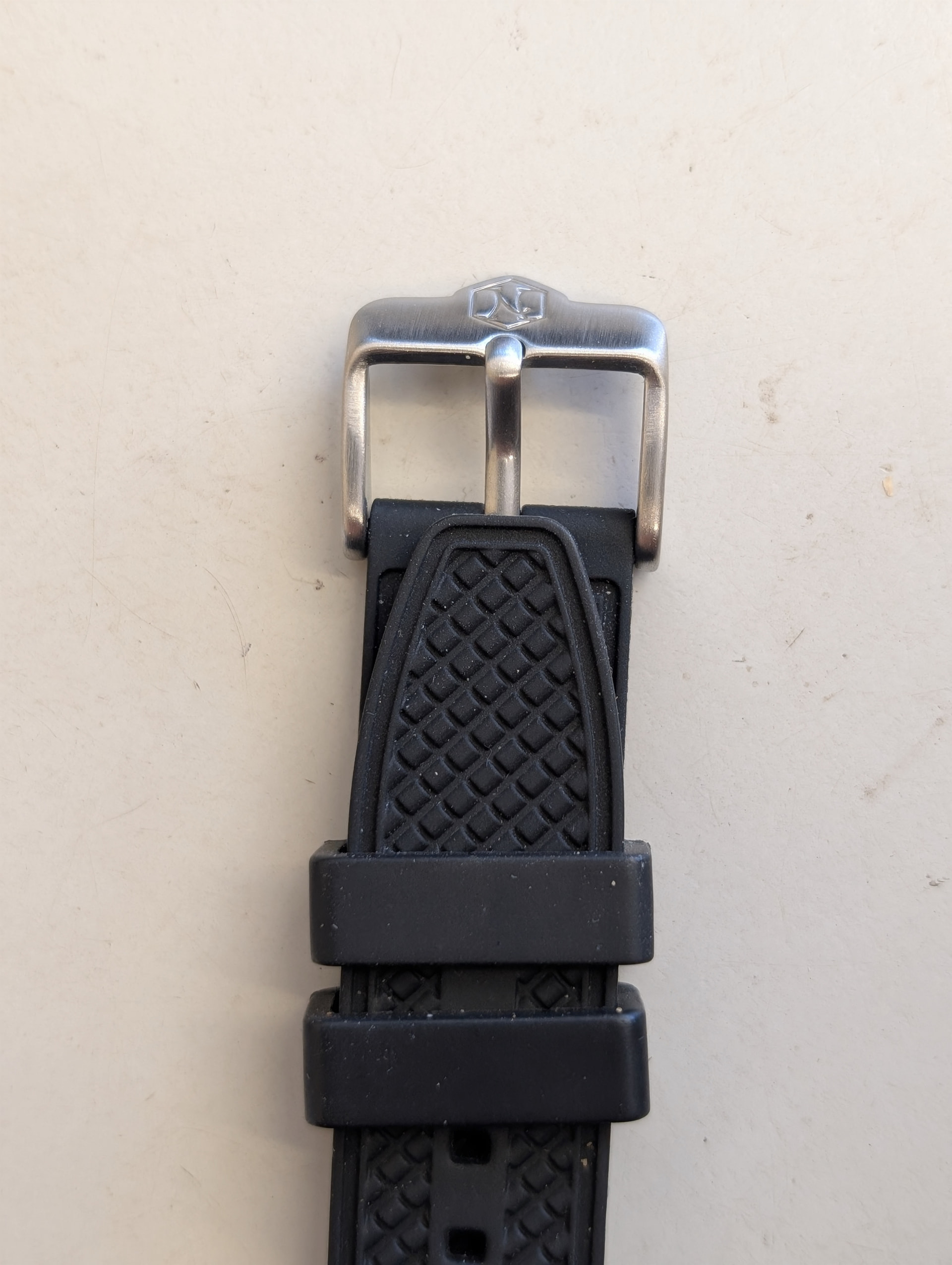 - Bezel: Fixed stainless steel bezel with a 24-hour scale for tracking a second time zone.