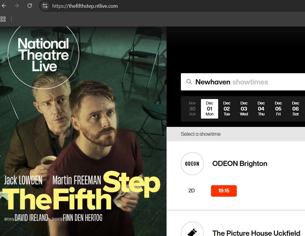 Using Newhaven as the location there seems to be a few places around the area showing it this week. Pick a day.