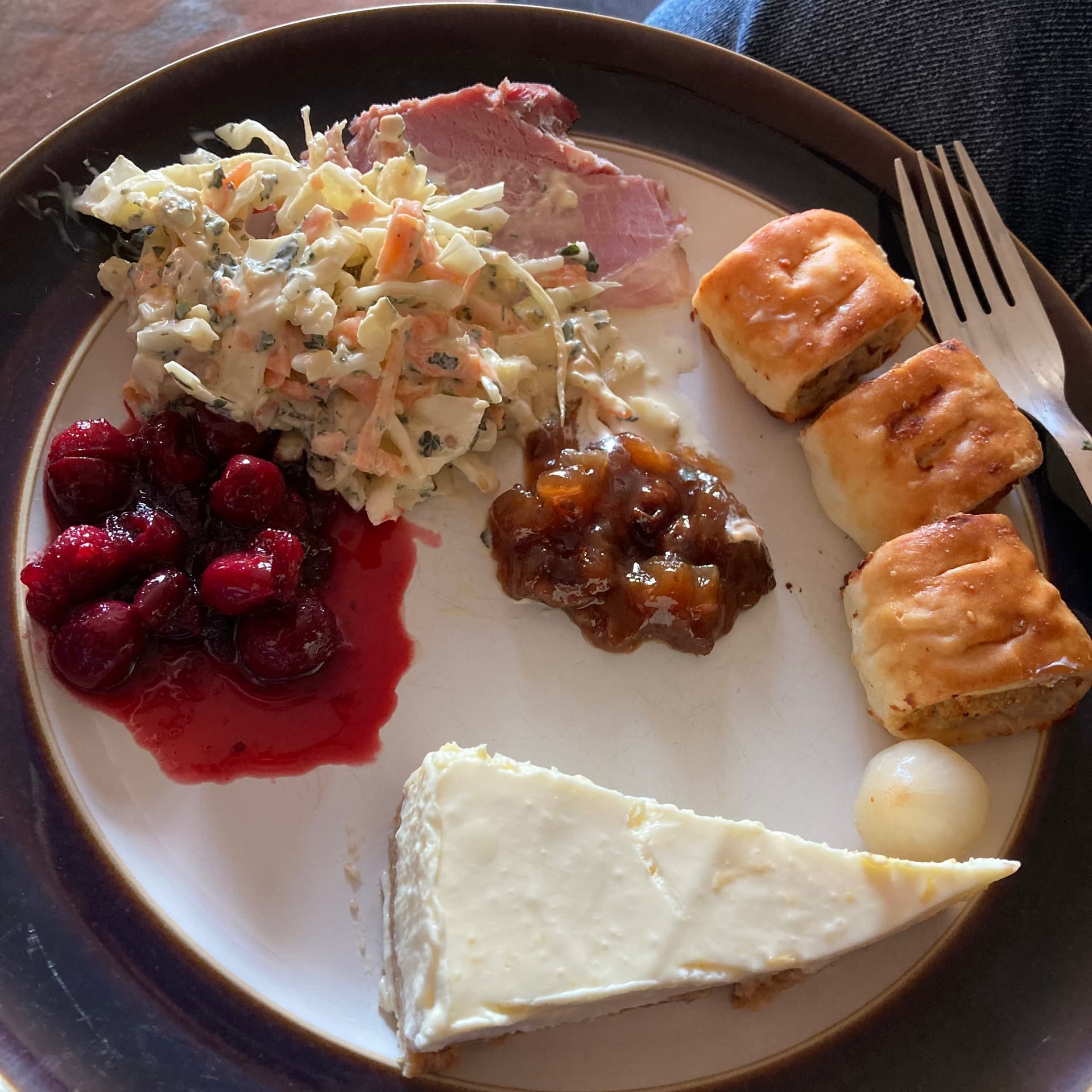I was too busy making snout-in-trough noises and hoovering vast amounts to take pics, but despite just being Sam & I (for once, blessed-be!), it was full works yesterday and today, complete with a two-(short)-rib roast off a local farm (raised full-life, killed and butchered on-farm) which was a last minute change. Add roast tates & 'snips, Yorks pud, home made bread and cranberry sauces, home made gravy, carrots, sprouts, and sausagemeat, onion, chestnut and sage stuffing it has been a two-day orgy of epic overindulgence.
